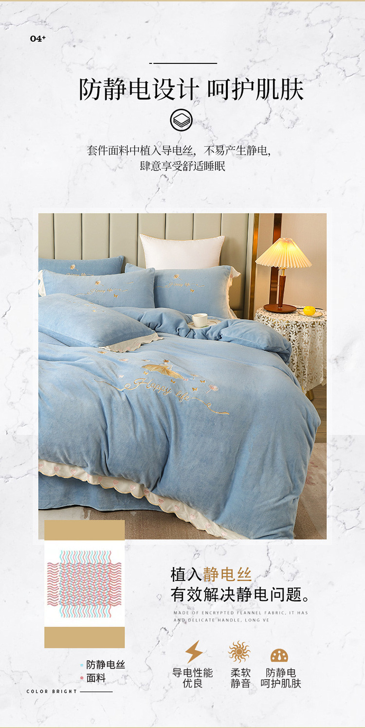 商品名称:沐辰 2021新款牛奶绒刺绣四件套-舒蕾公主 舒蕾公主-蓝