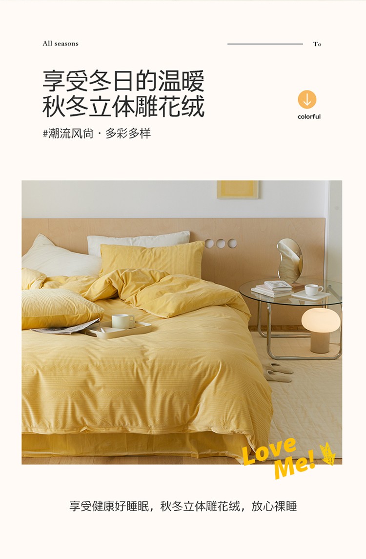 (总)梦享生活 2022新款牛奶雕花绒四件套,花枝-奶黄,花枝-灰,花枝-粉,菱形格-绿,菱形格-白