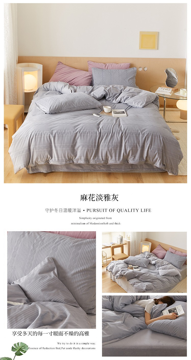 (总)梦享生活家居 2025新款全棉肌理纹提花四件套,灰黑色