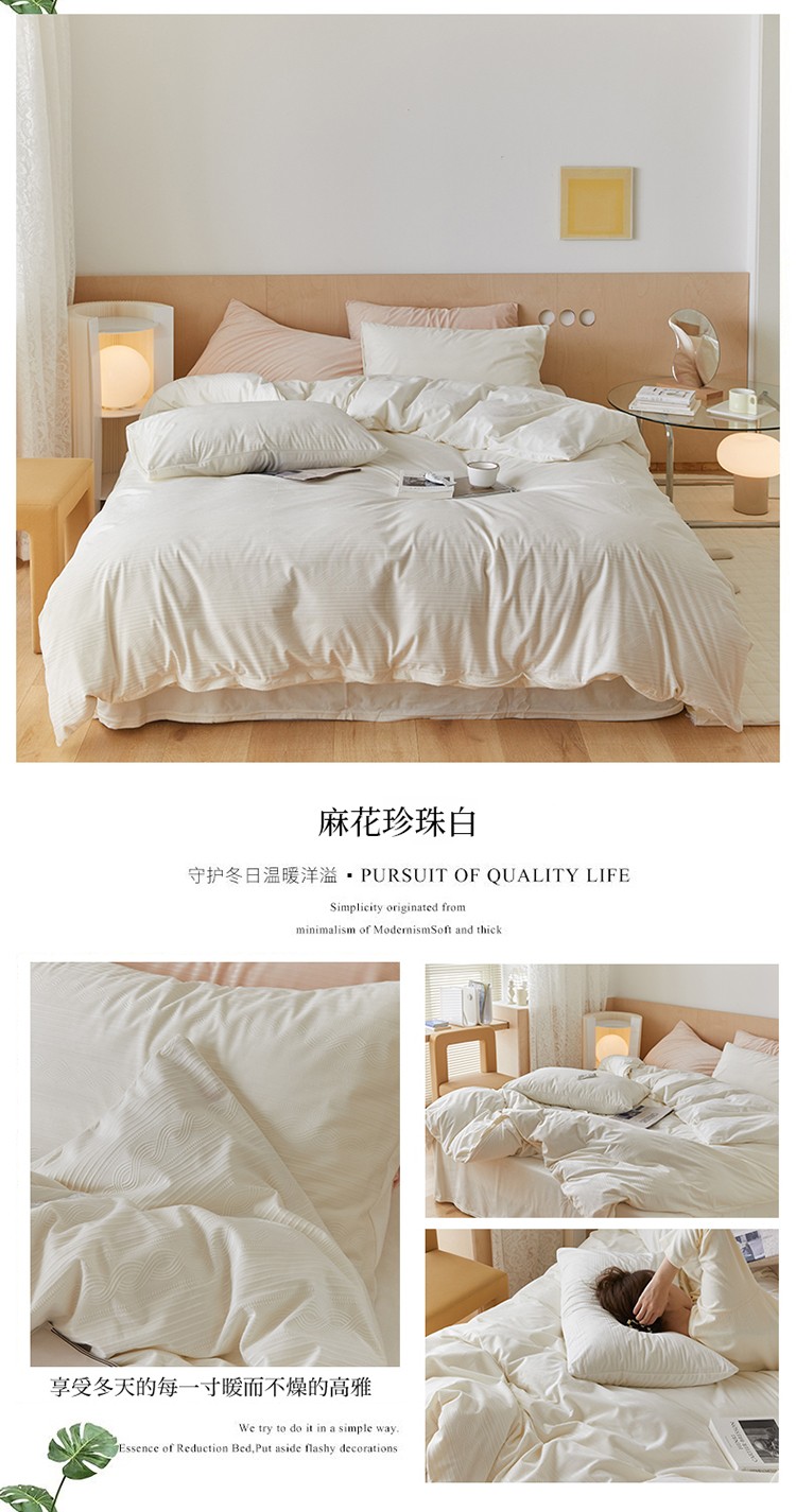 (总)梦享生活家居 2025新款白色全棉肌理纹提花四件套,白露,简云,流年,莫语,曲线