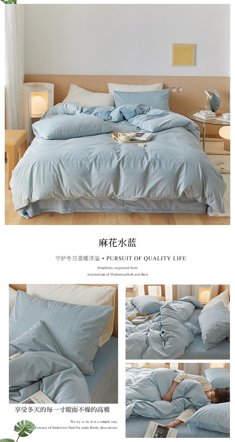 (总)梦享生活 2022新款40支华夫格提花四件套,水蓝奶茶,焦糖双拼,蜂蜜黄奶茶,盐白双拼