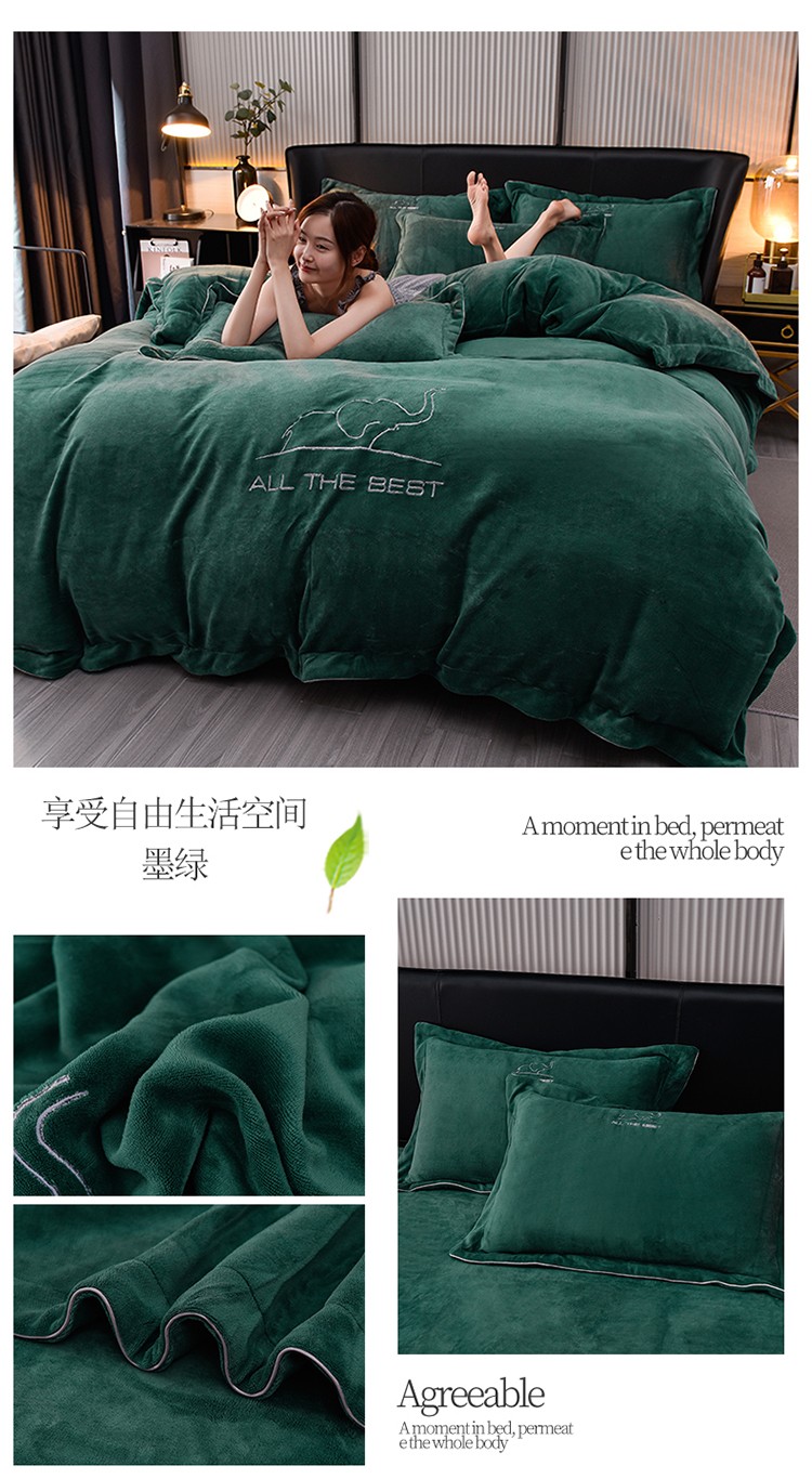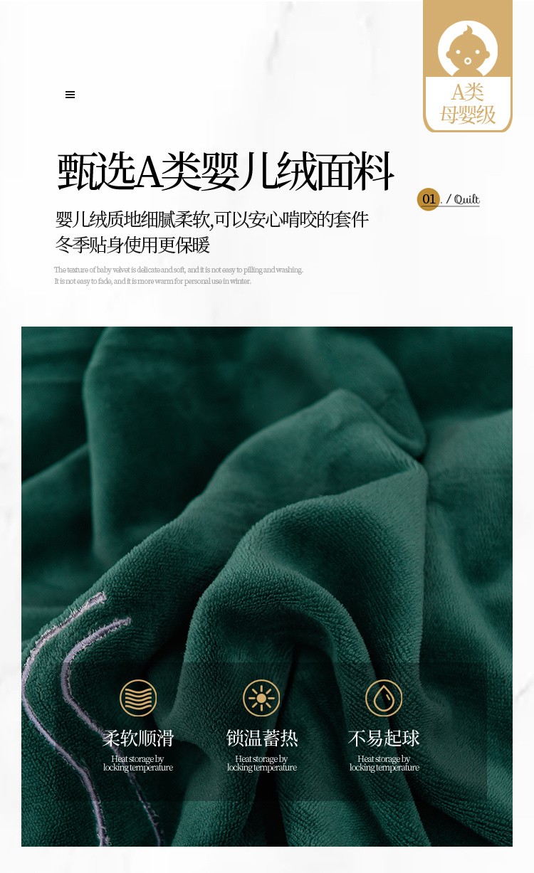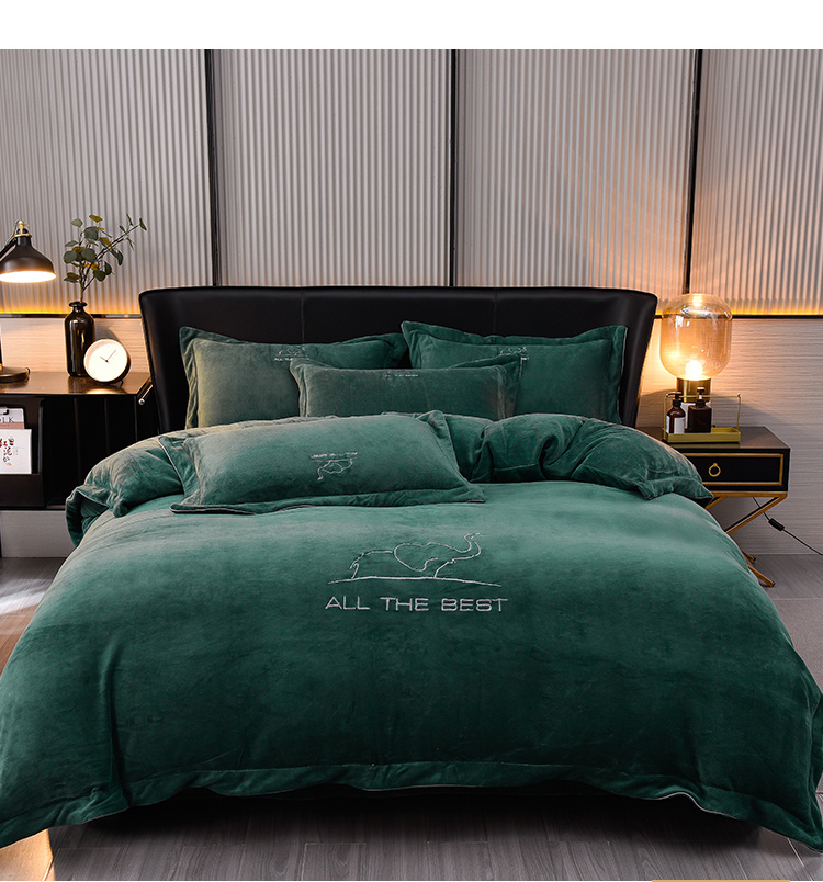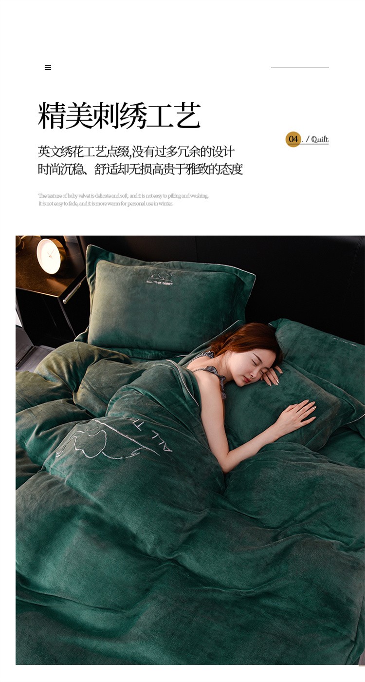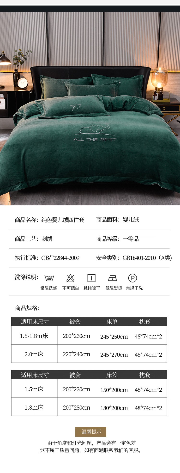 商品名称:米奈家居 2024新款A类婴儿绒四件套有质检报告小象 墨绿