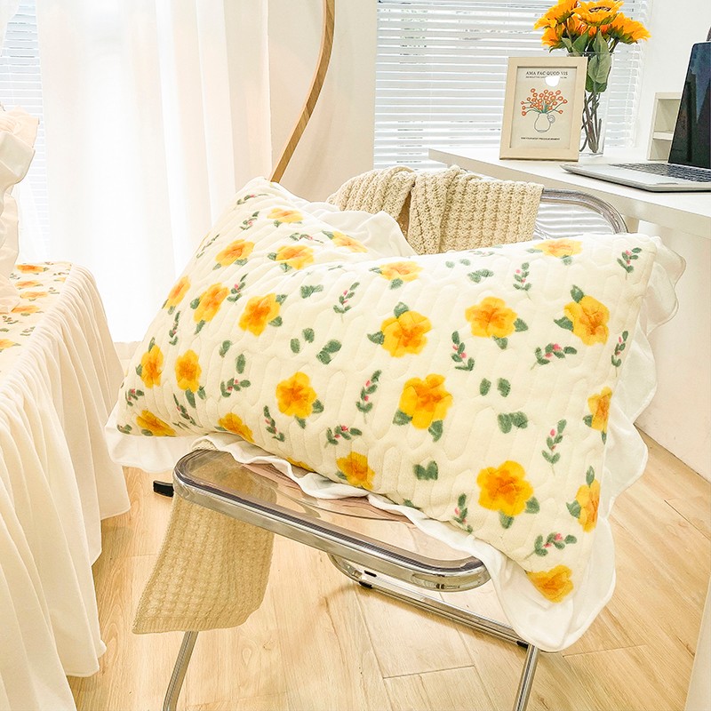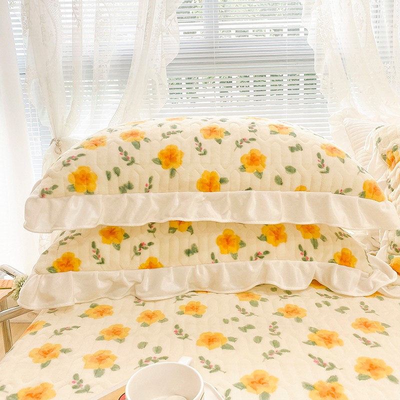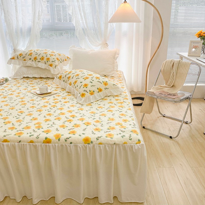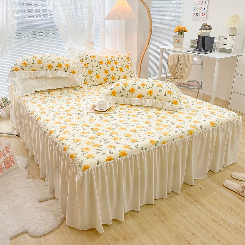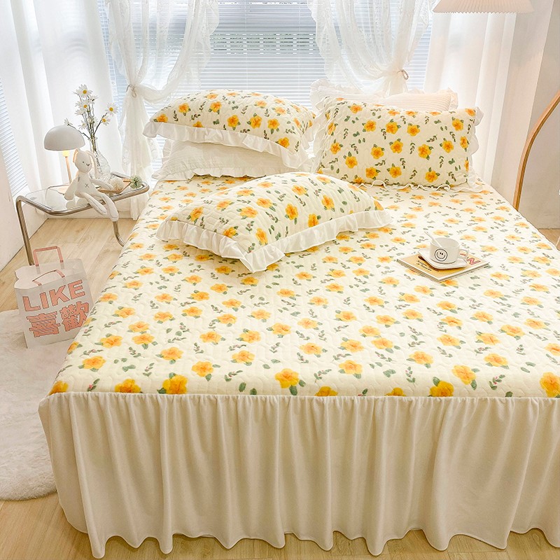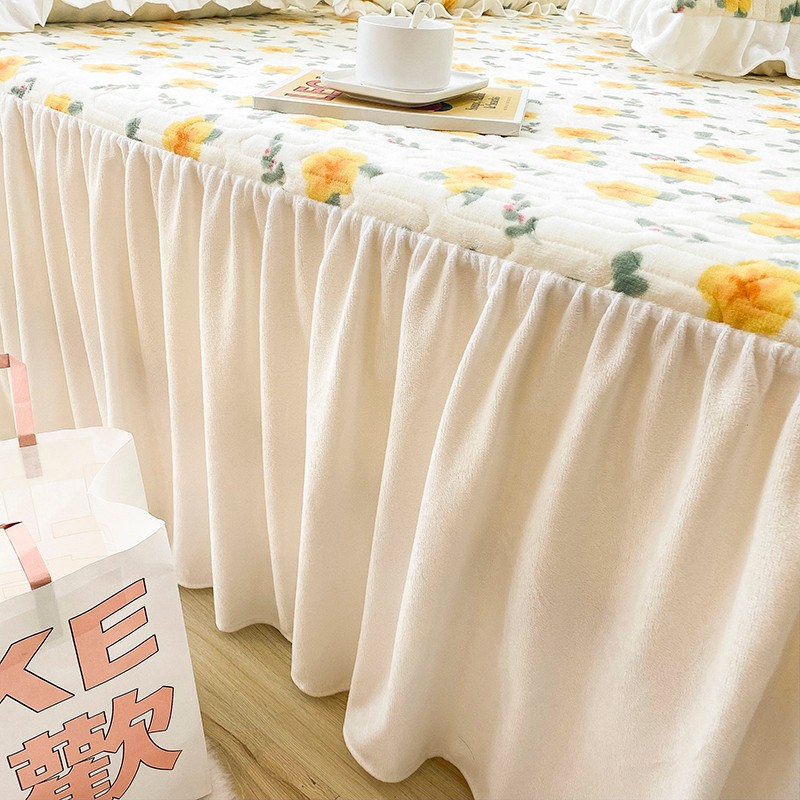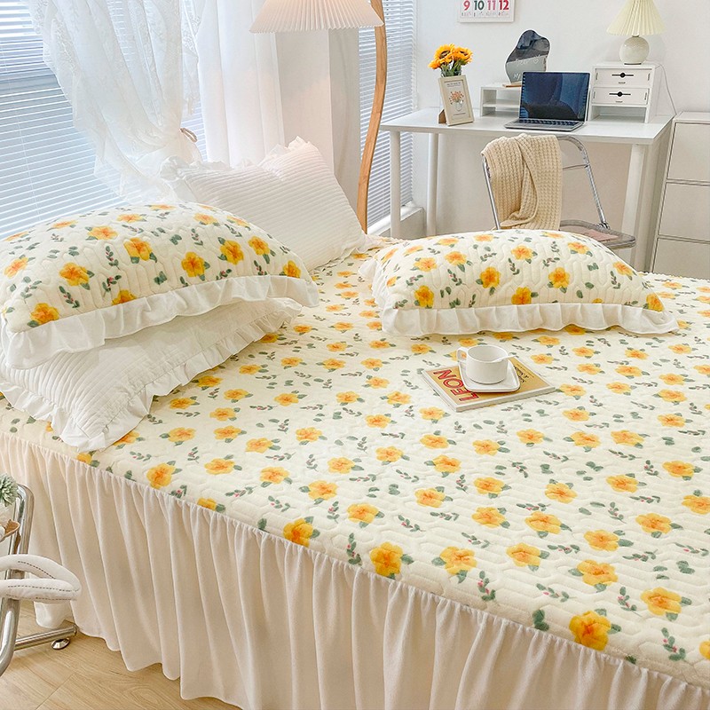 米莱家纺 2021新款牛奶绒夹棉床裙三件套 韵彩黄