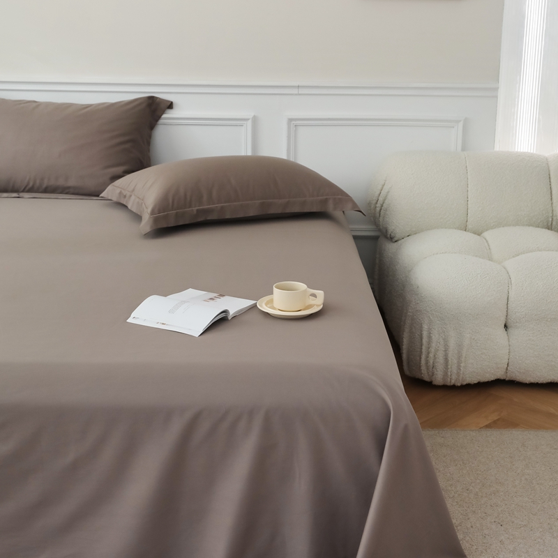 蕊姿超柔水洗超柔水洗新款50s双股新疆长绒棉单床单大地棕