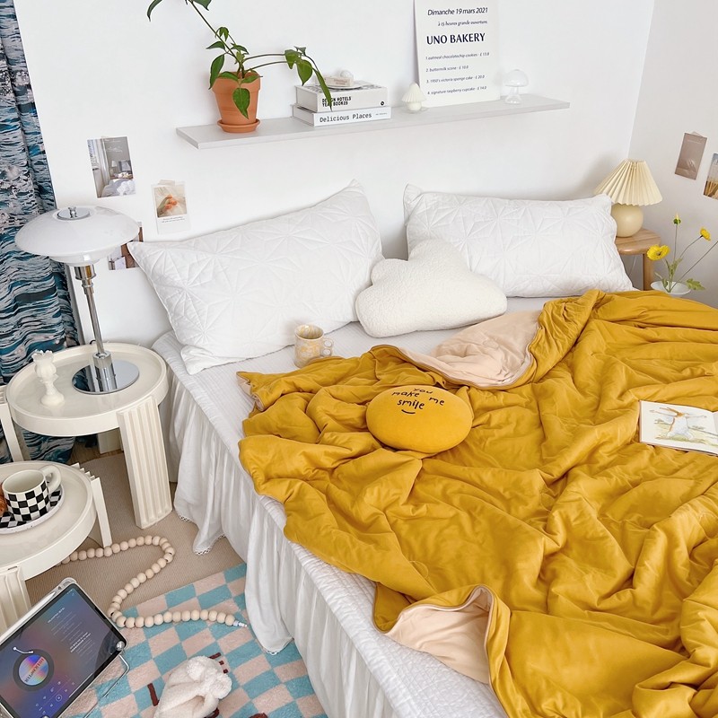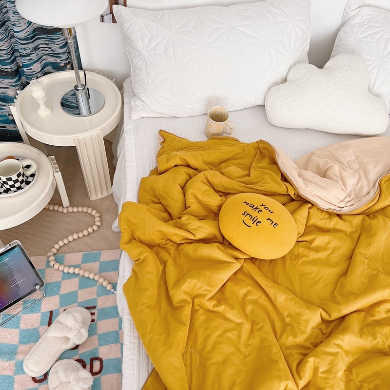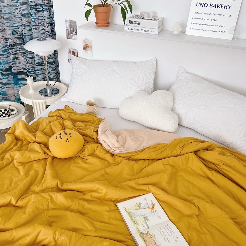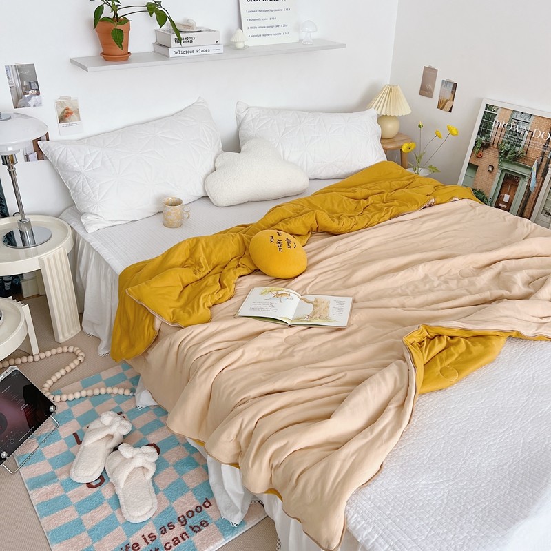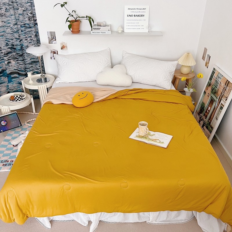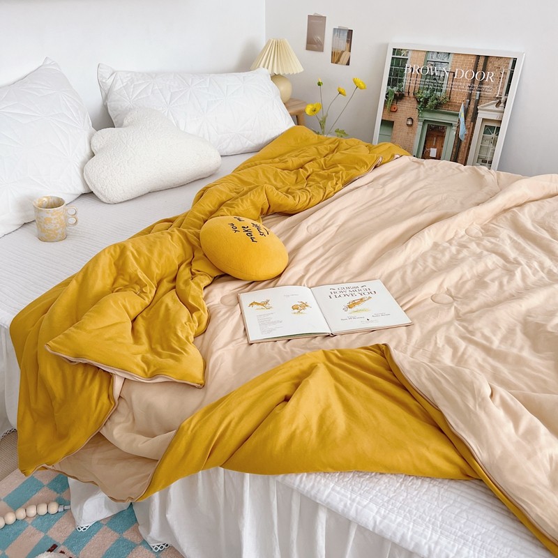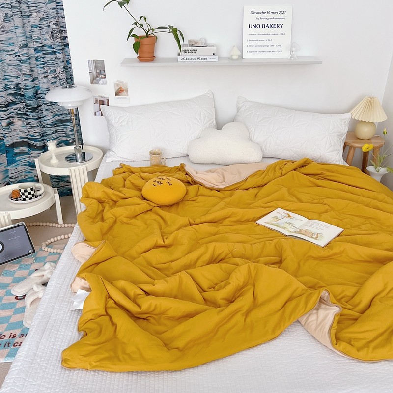 星期八 2022新款马卡龙针织棉大豆夏被 深黄浅黄