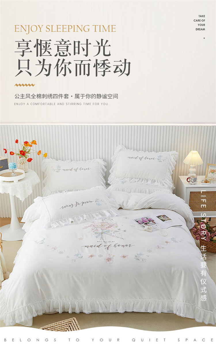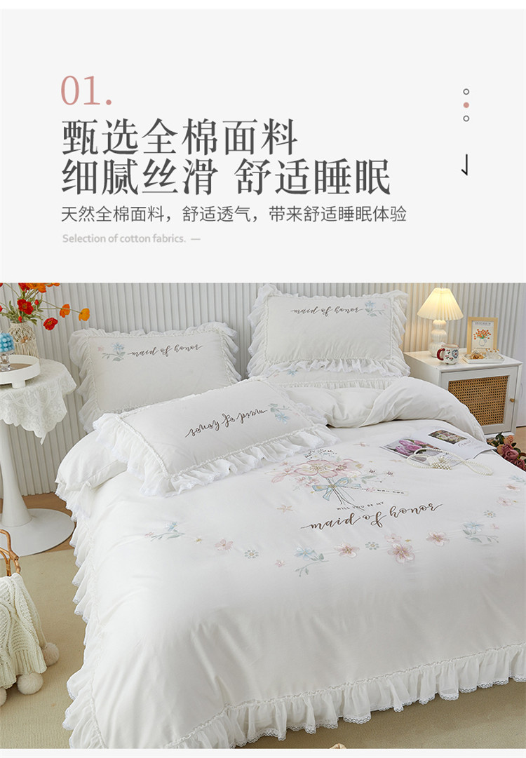 (总)亲亲公主 2025新款全棉法式宽花边四件套-午后佳人,午后佳人