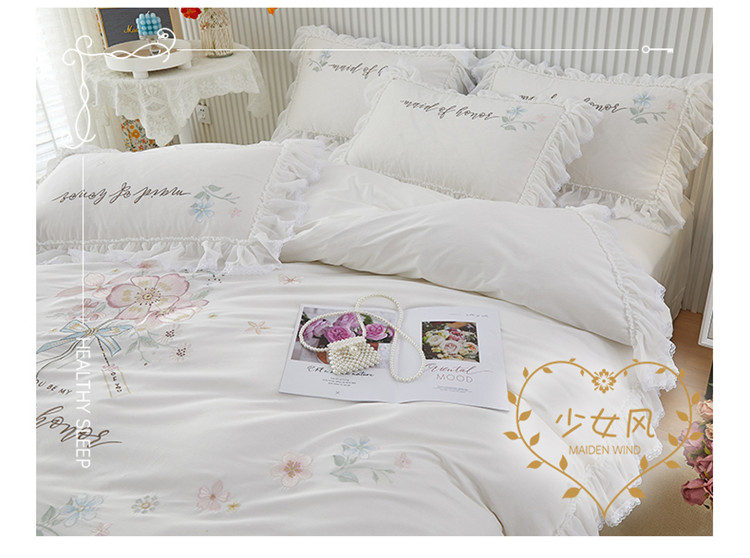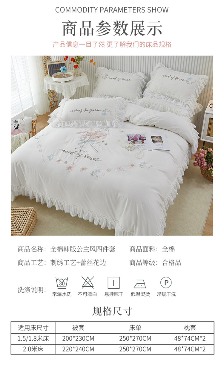 商品名称:亲亲公主新款全棉韩版公主风四件套-美丽邂逅 白色