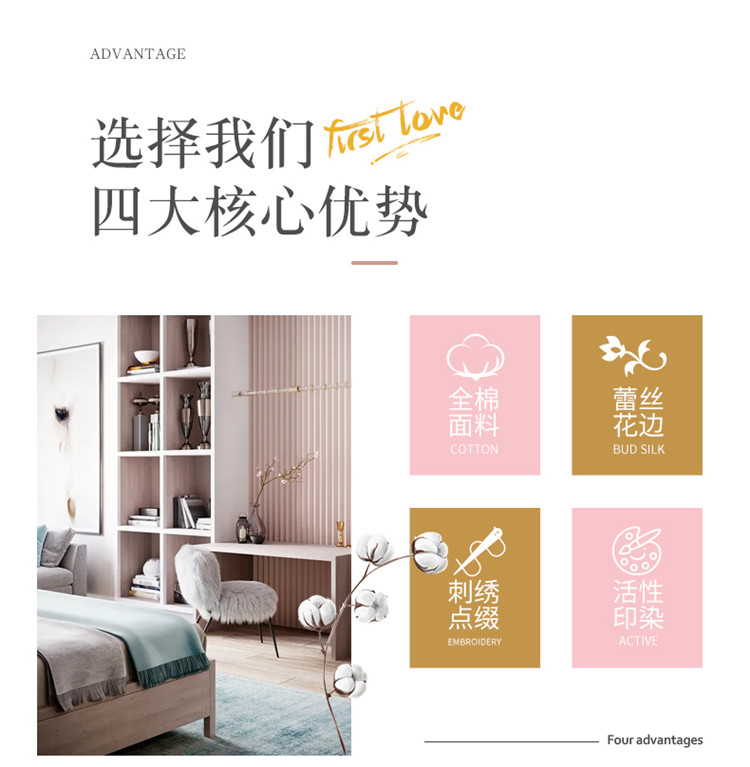 (总)亲亲公主 2025新款全棉法式宽花边四件套-浅浅爱,浅浅爱