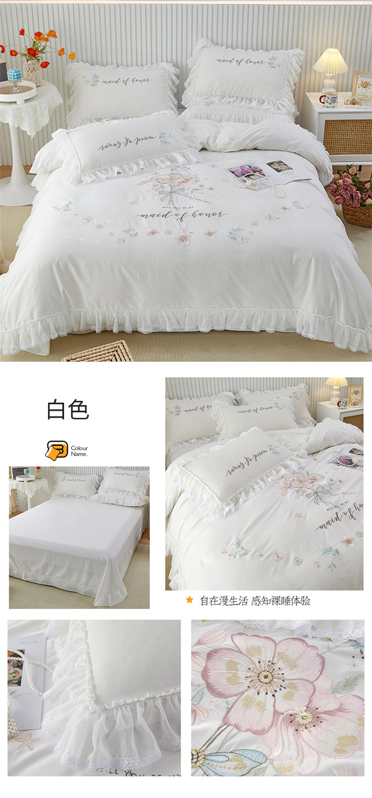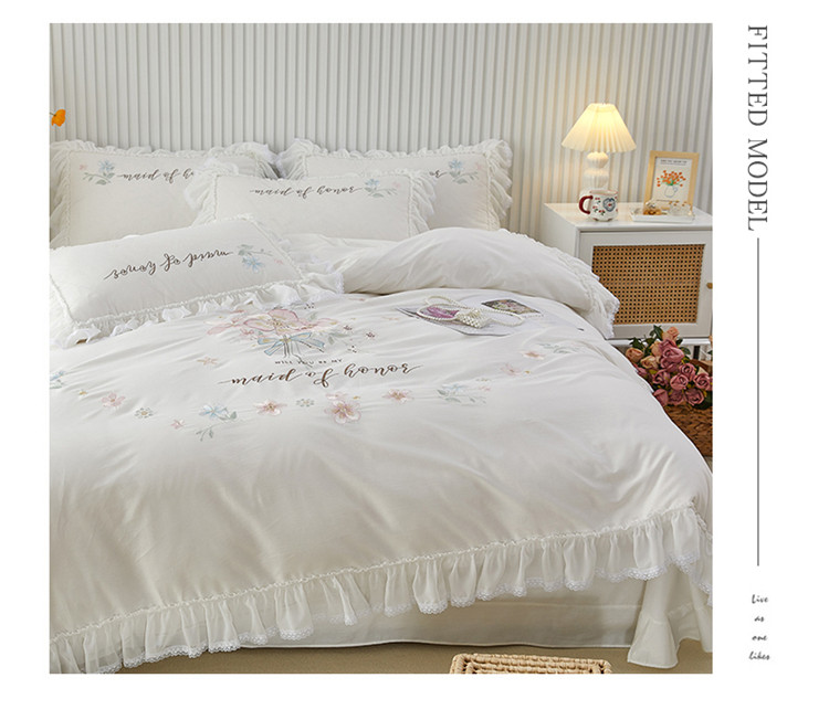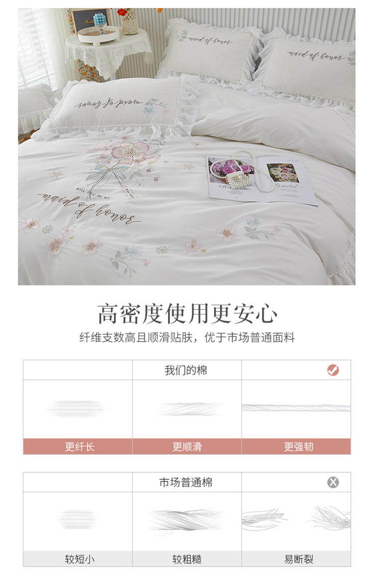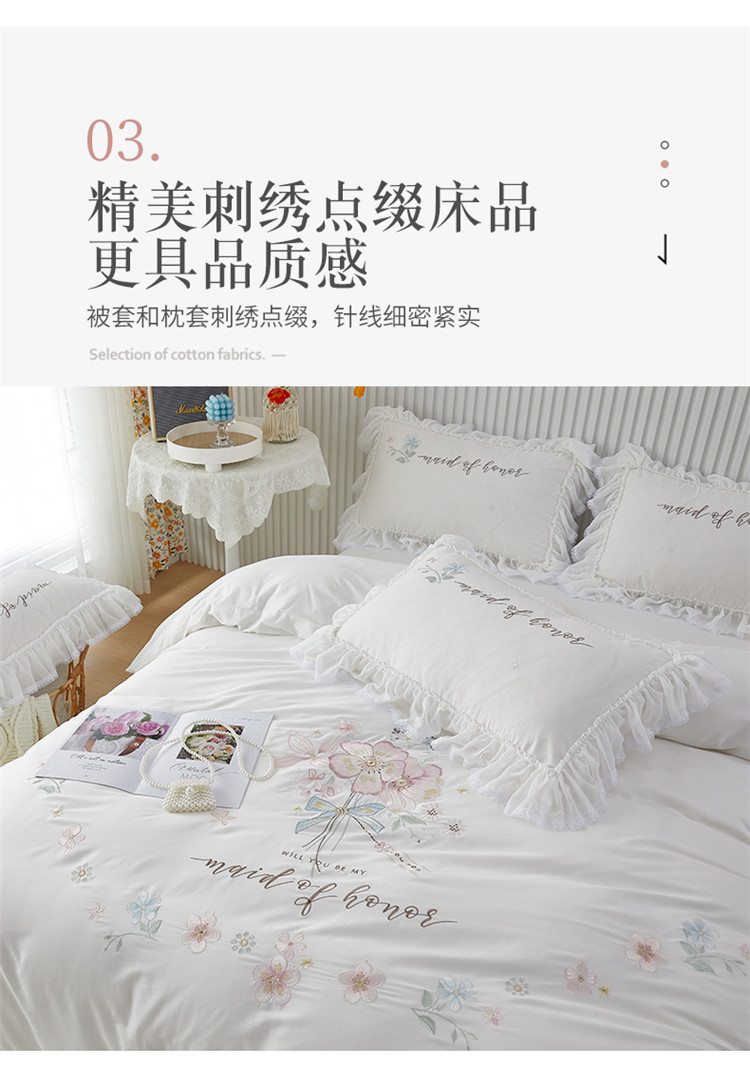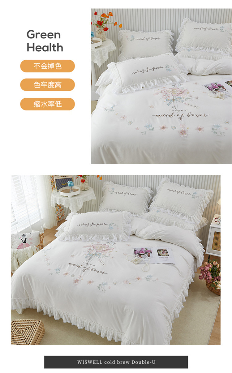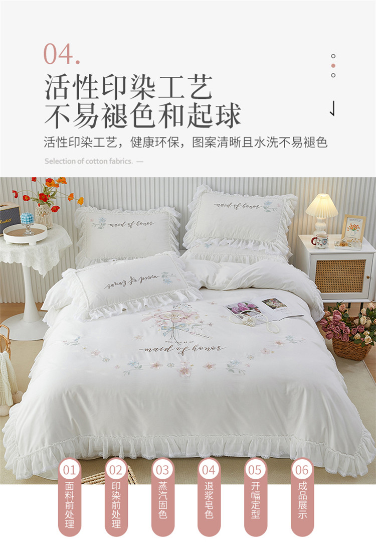 (总)亲亲公主 2026新款全棉法式花边款四件套-纯色茉莉,纯色茉莉