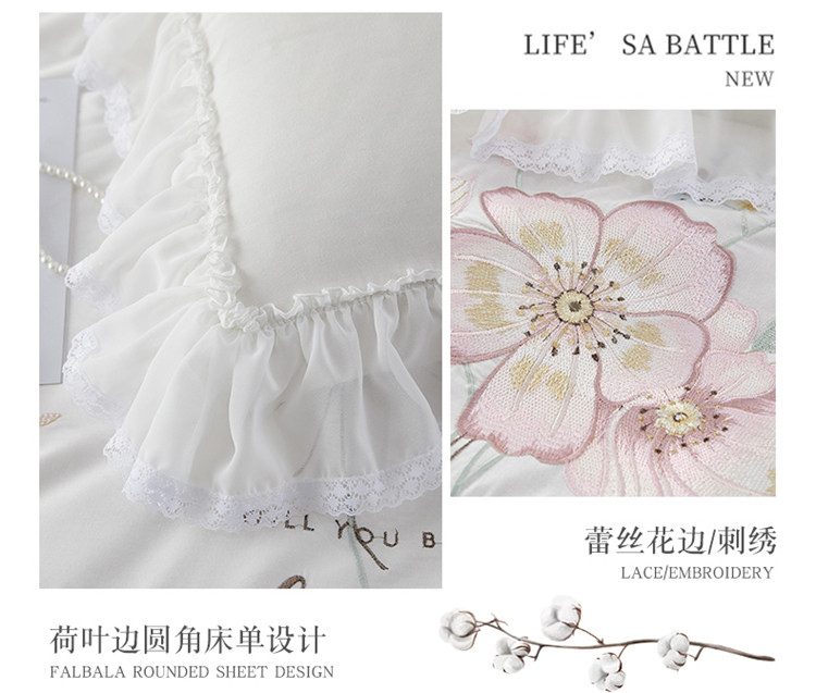 亲亲公主新款全棉韩版公主风四件套-美丽邂逅 白色
