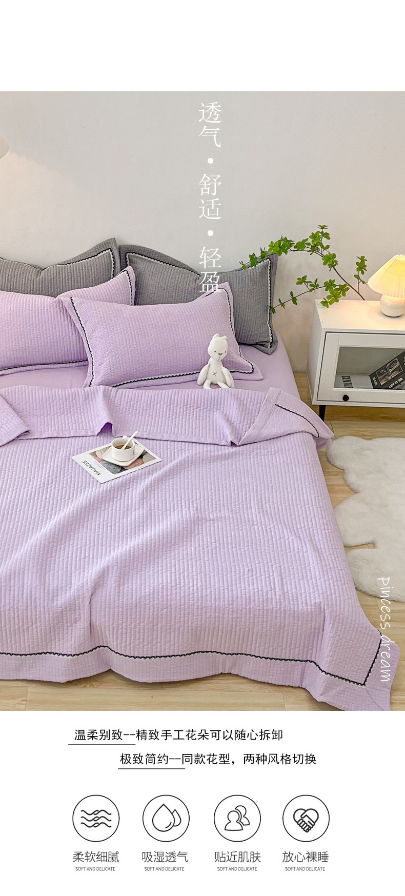当前位置: 91家纺网 > 商品网购 > 床品套件 > 四件套 > 夏被四件套 > 乐卧2026雅韵蕾丝花边手工花卉夏被四件套有花版兰花色有花版