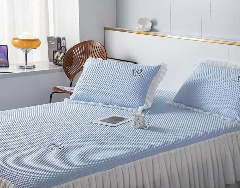 佳居缘 2022新款冰豆豆冷感床裙款凉席三件套 天空蓝