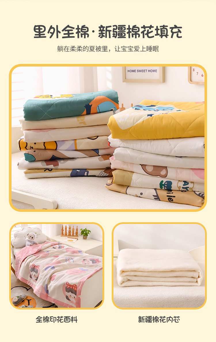 (总)芭伯妮 2025新款40支全棉新疆棉花幼儿园儿童夏被,白桃公主,虎头虎脑,嘉年华,开学季,恐龙家族-黄,恐龙家族-绿,奶油兔,小兔叽,幸福宝贝,宝宝巴士-蓝,宝宝巴士-米,动漫恐龙-米,欢乐萌熊,里德熊,彩虹喵,蜡笔画,汽车乐园