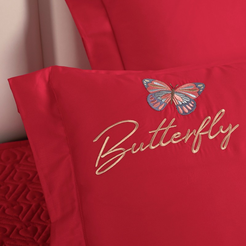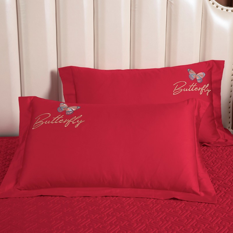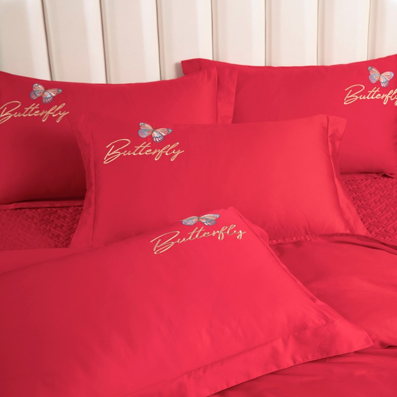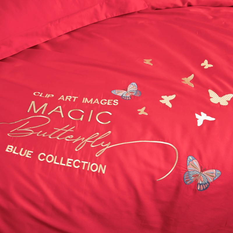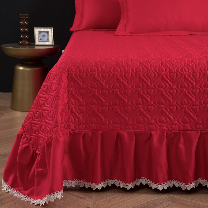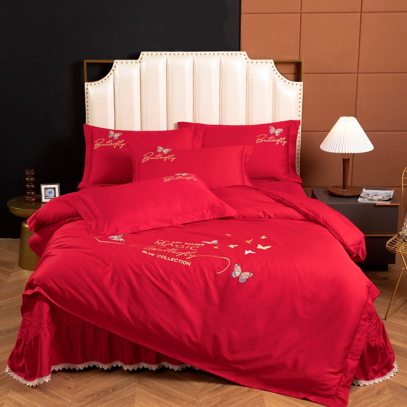 木兰花2023新款 120S长绒棉刺绣四件套床盖床裙款中国红