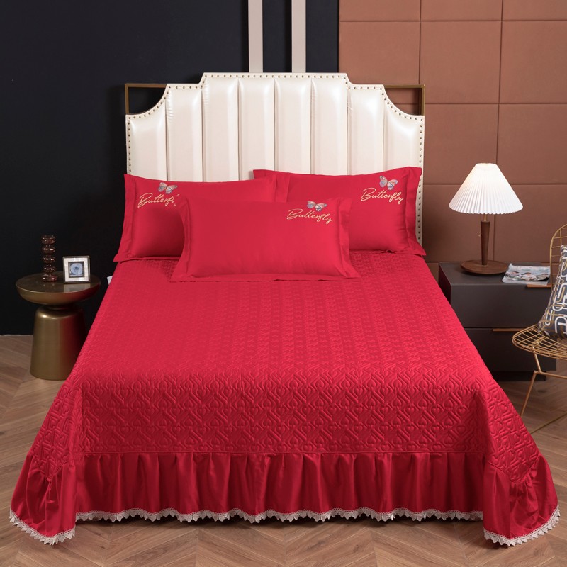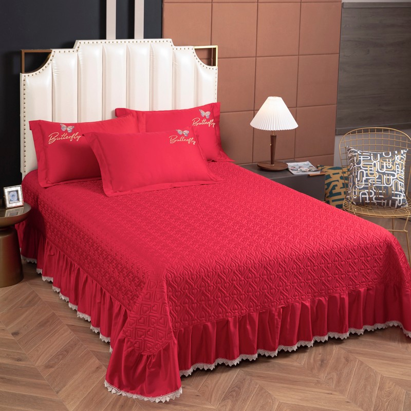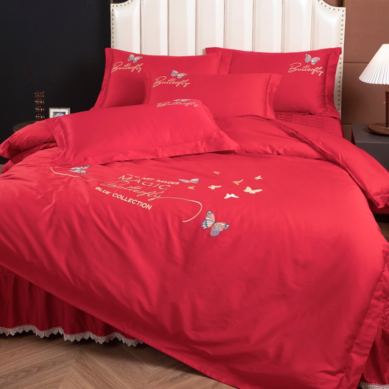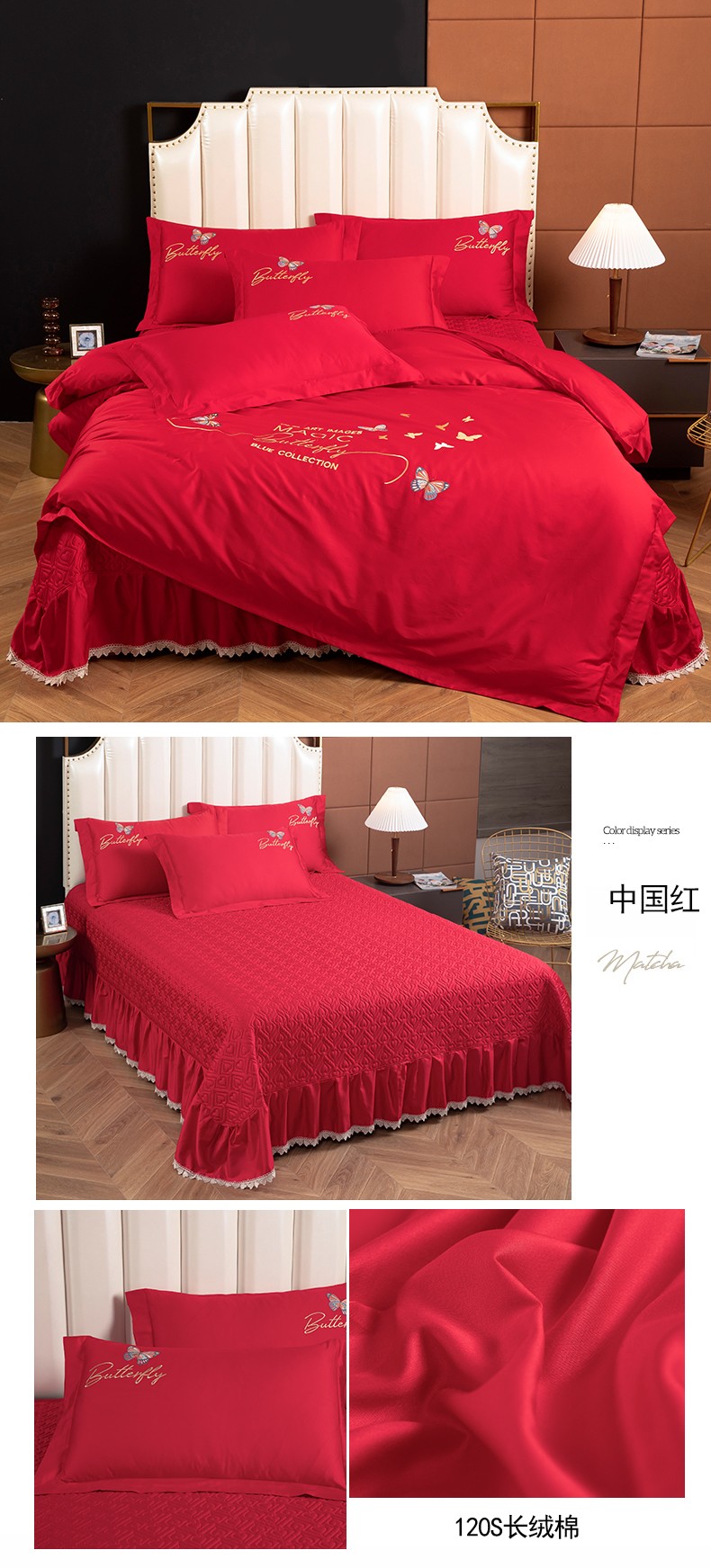 商品名称:木兰花2023新款 120S长绒棉刺绣四件套床盖床裙款中国红