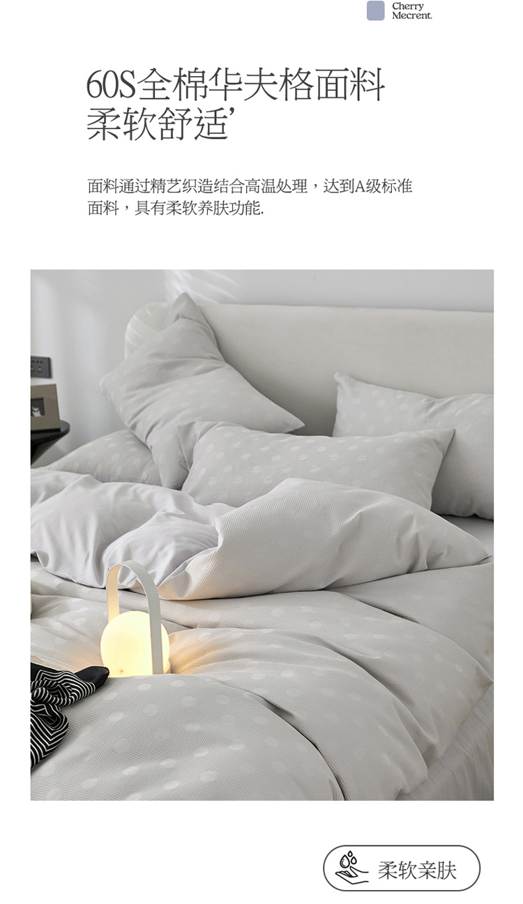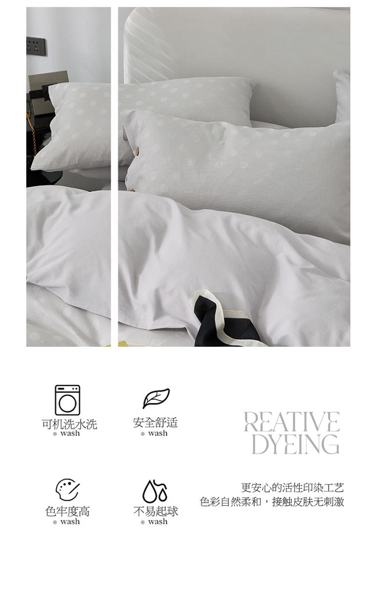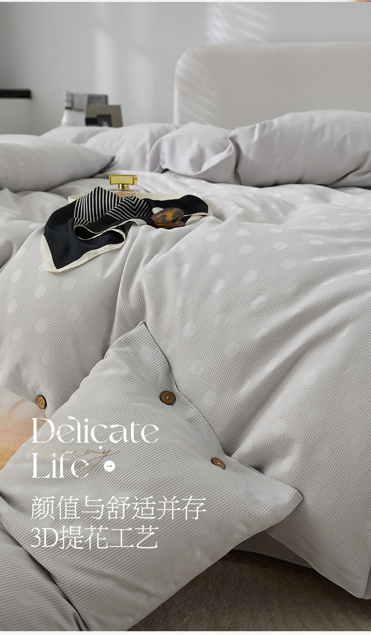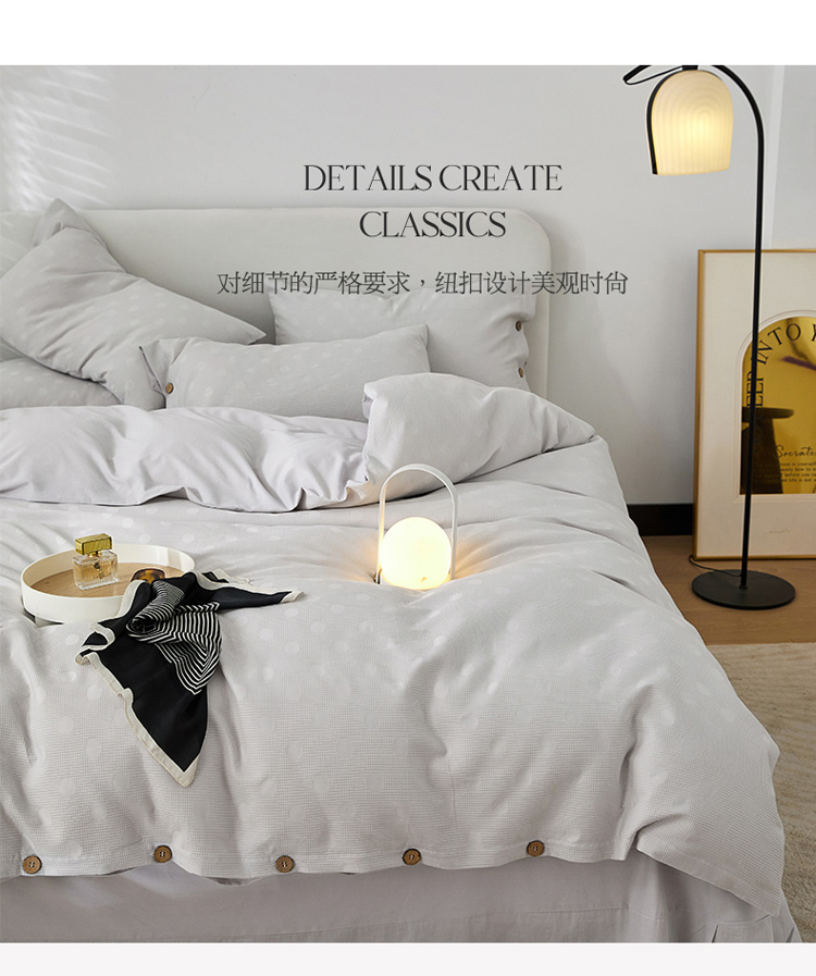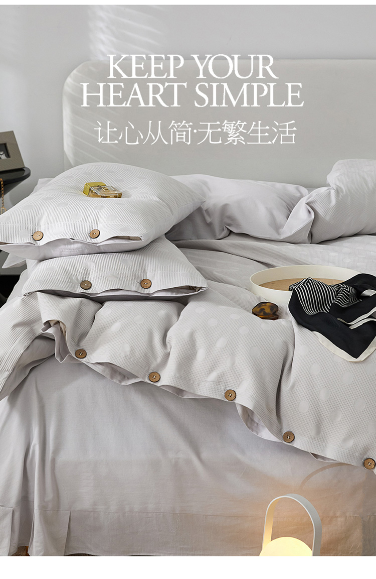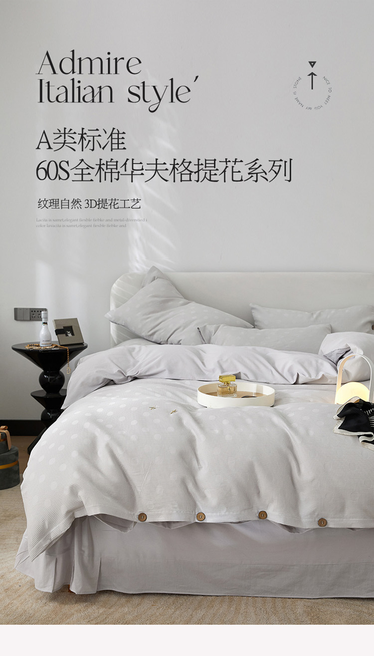 商品名称:名品优仓2023新款60支华夫格水洗棉提花四件套 沫之圆-幽都灰