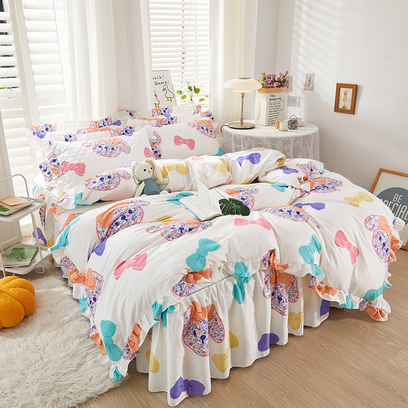 (总)十个点家纺 2025新款加厚磨毛木棉床裙三件套-绫罗系列,爱意萌萌,贝贝熊,格桑花,海棠花,蝴蝶兔,花千骨,米兰,木棉花,山茶花,同心结,心相印,心愿-米