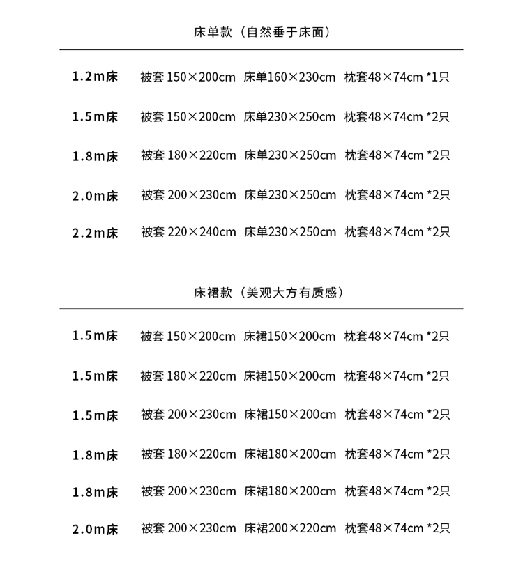 2.0m床裙款四件套(被套200*230) | ¥75.00 |
