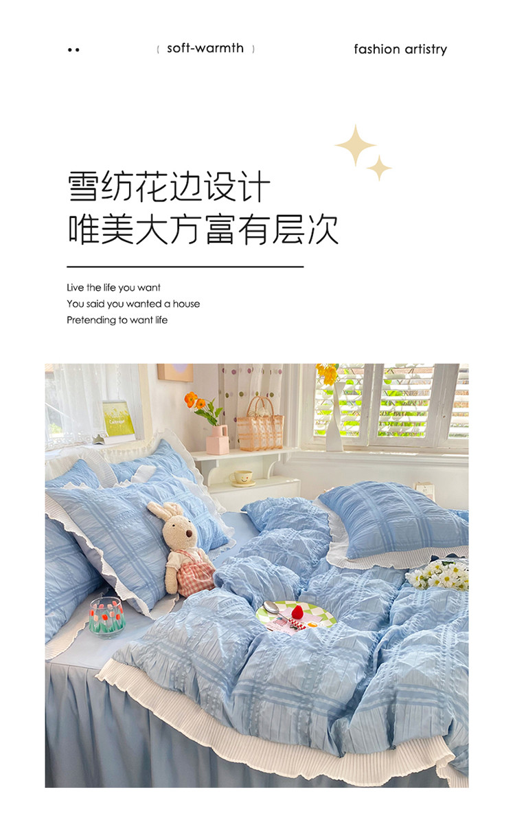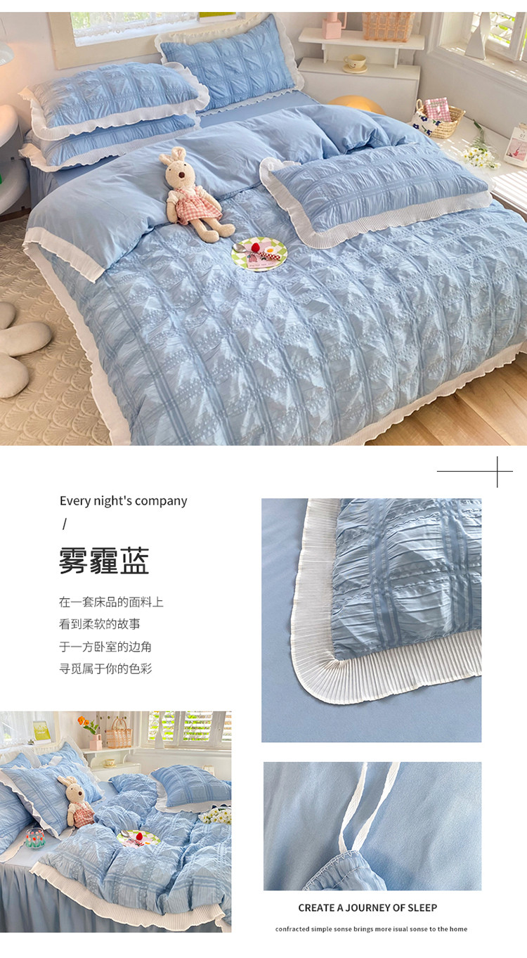 当前位置: 91家纺网 > 商品网购 > 床品套件 > 四件套 > 普通磨毛四件套 > 逸尚阁 2022新款泡泡纱方格四件套 泡泡纱方格—雾霾蓝