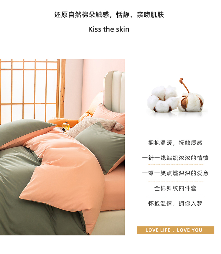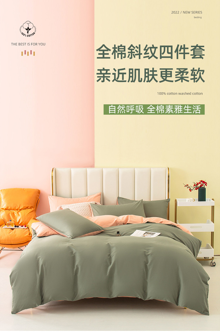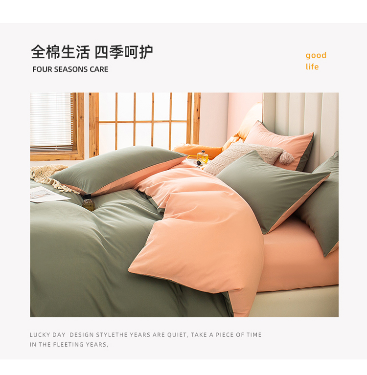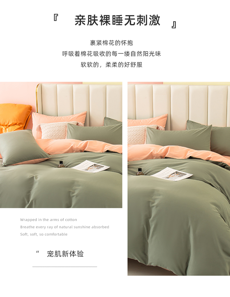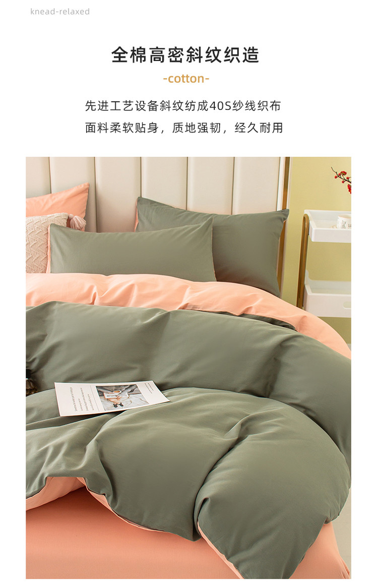 当前位置: 91家纺网 > 商品网购 > 床品套件 > 四件套 > 全棉普通四件套 > 柠萌2022新款全棉40支纯棉纯色双拼系列四件套 军绿+粉玉