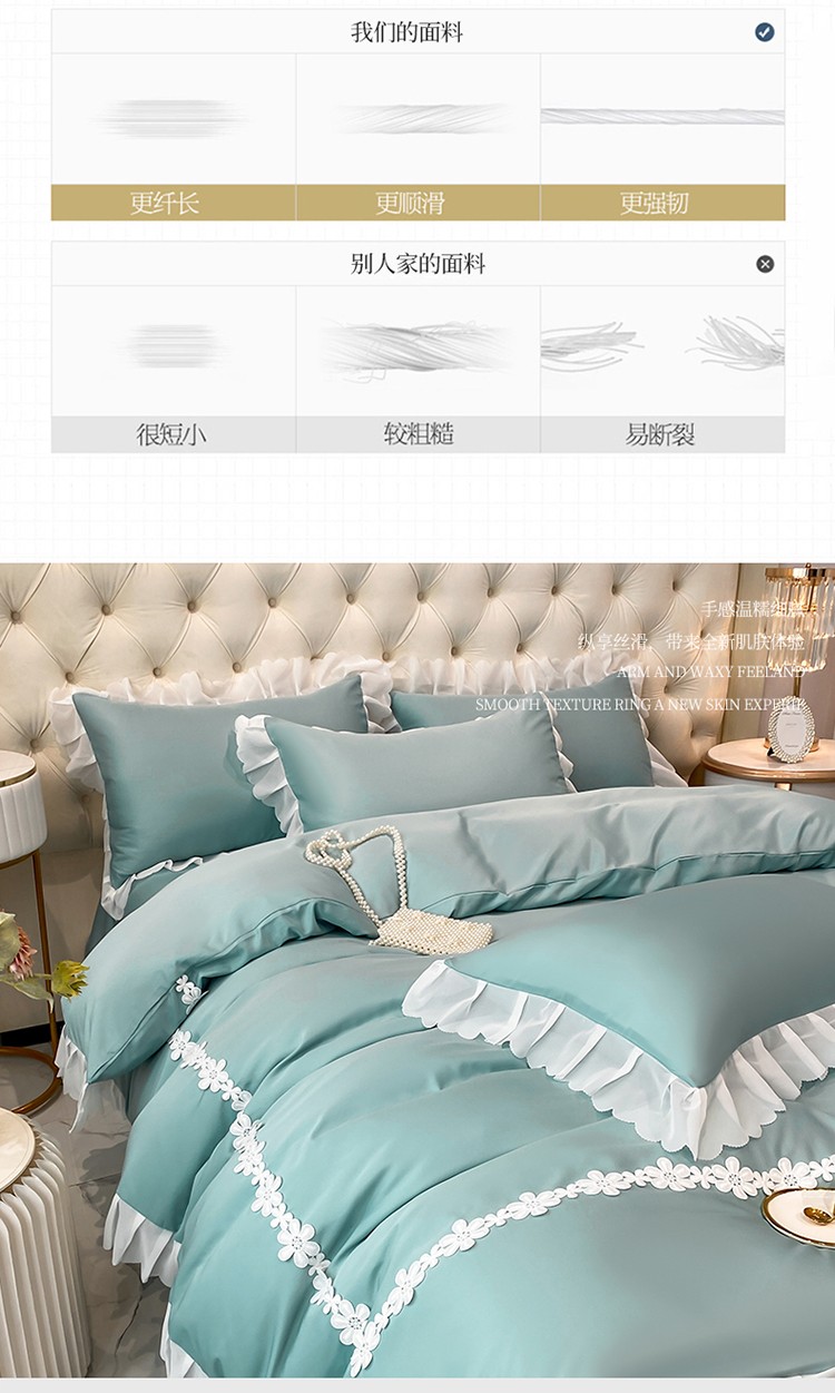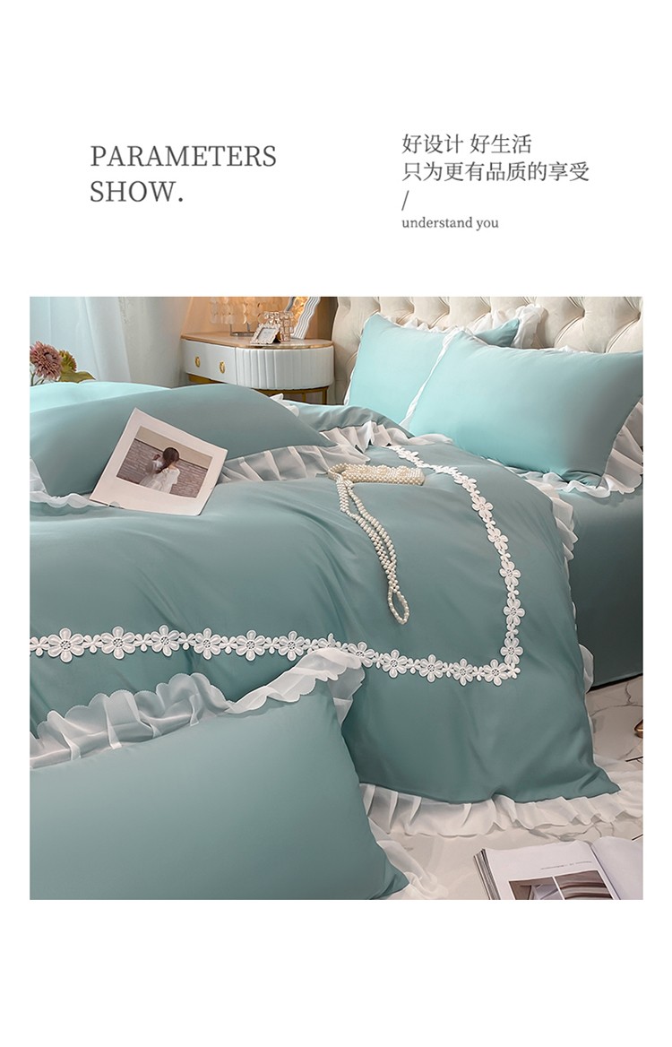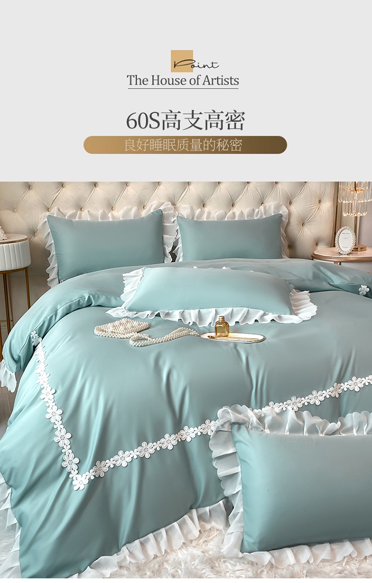 (总)狂想家 2025高定蕾丝糯小棉安妮系列四件套,茶花粉,蜜桃粉,奶昔白,晴空兰