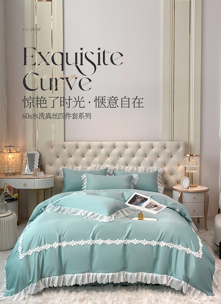 商品名称:狂想家 2025新款曲奇水洗真丝系列四件套 曲奇豆绿