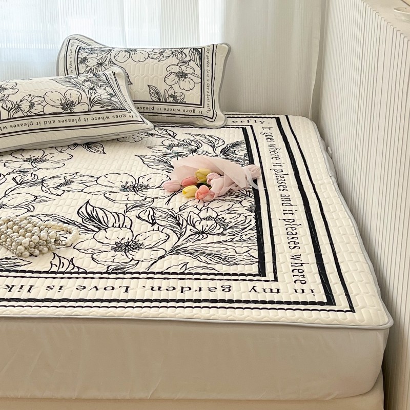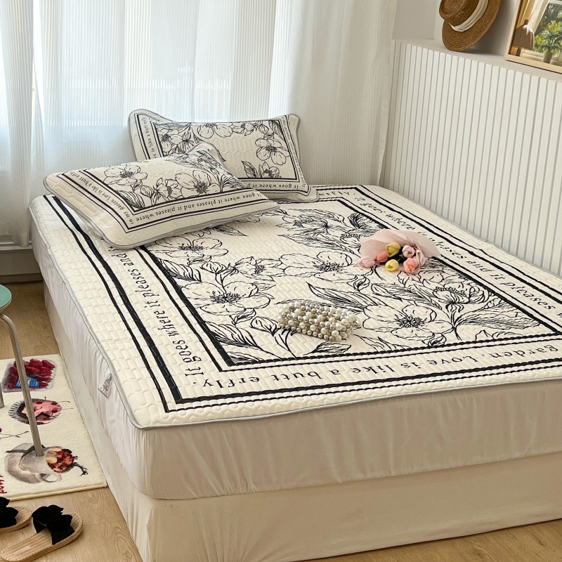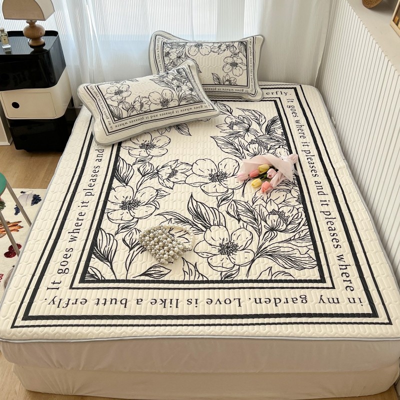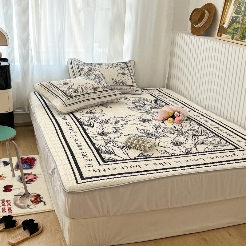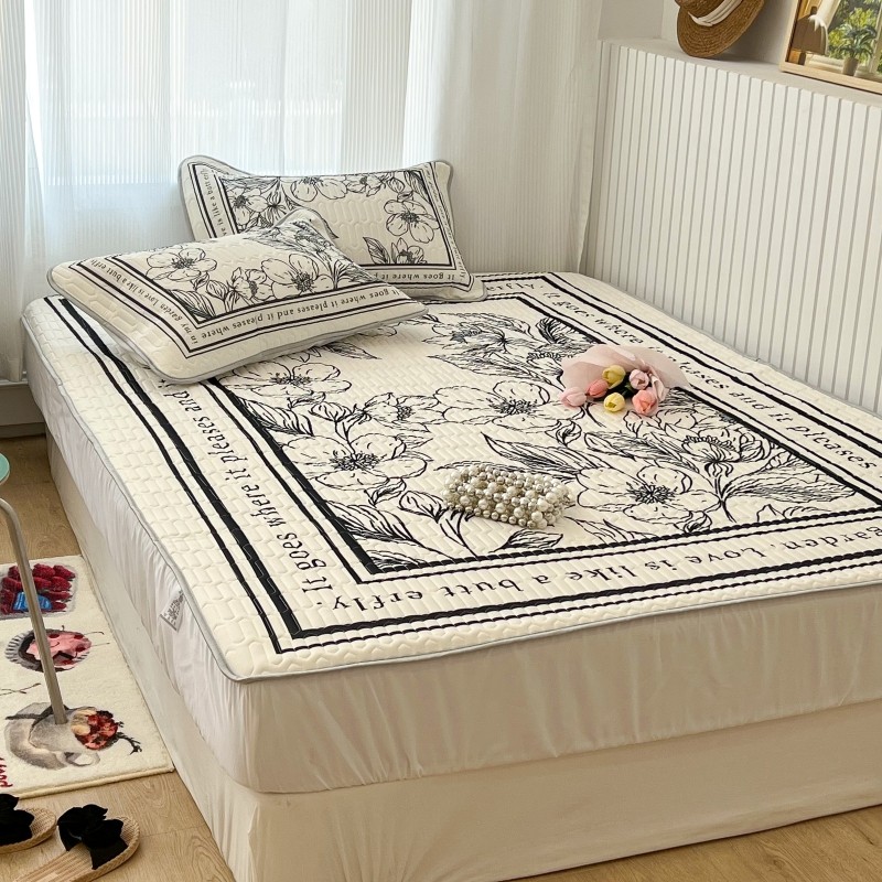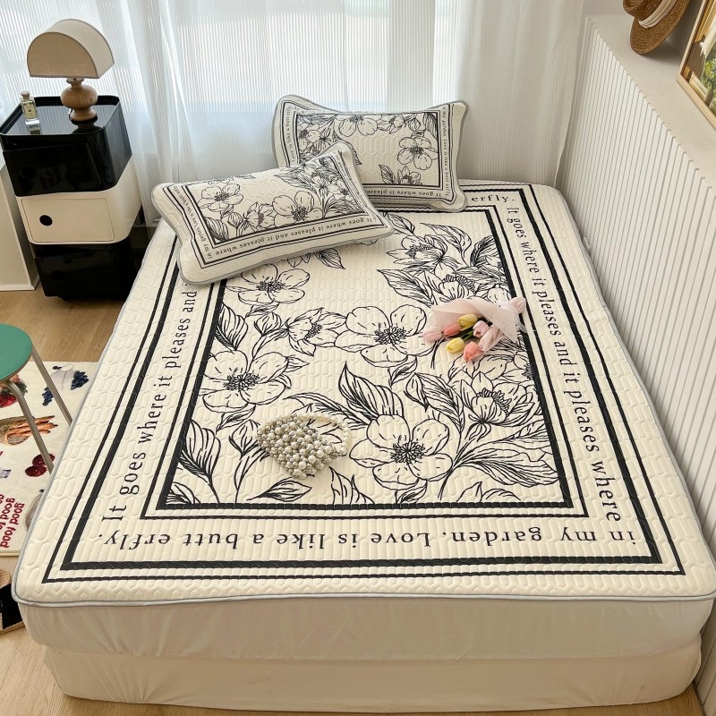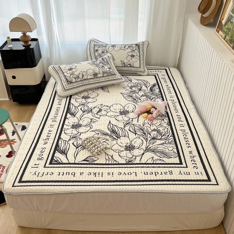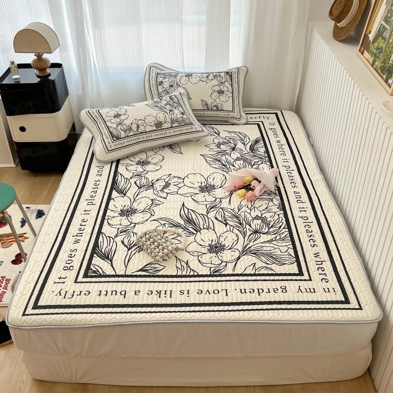 昔可 2022新款ins风小清新床笠款乳胶凉席三件套 床笠款-后花园