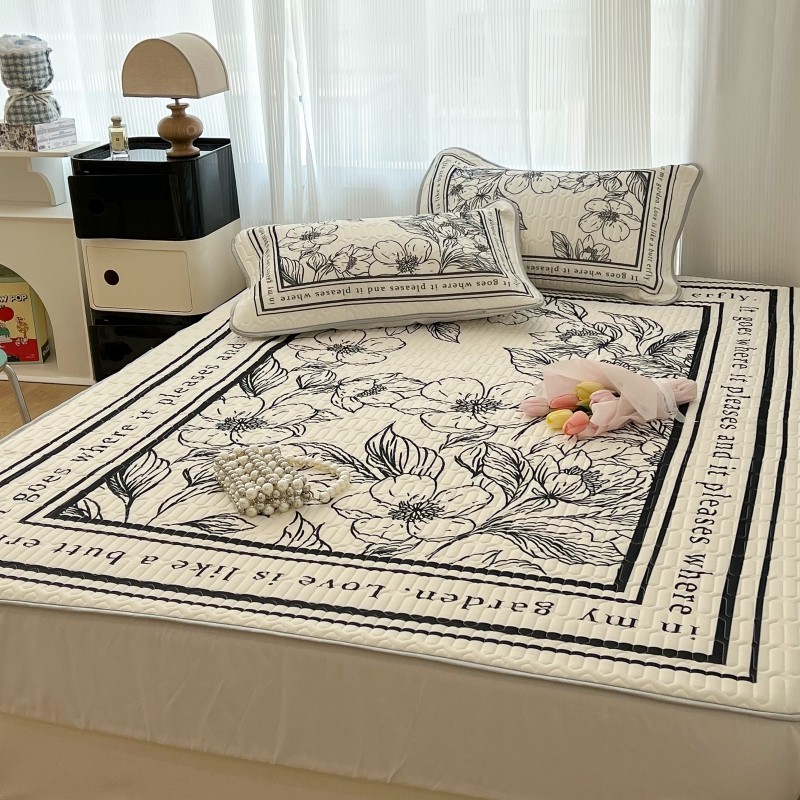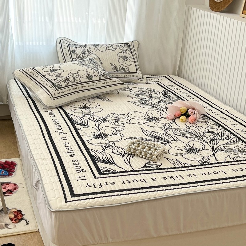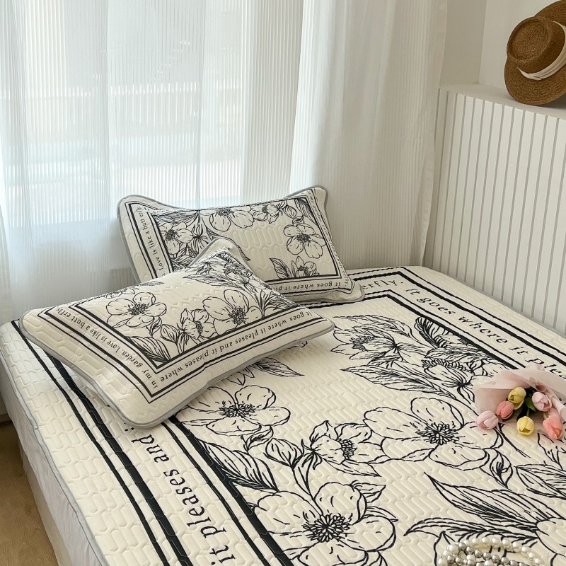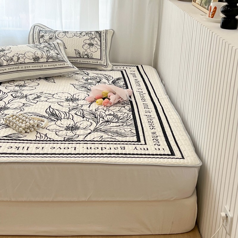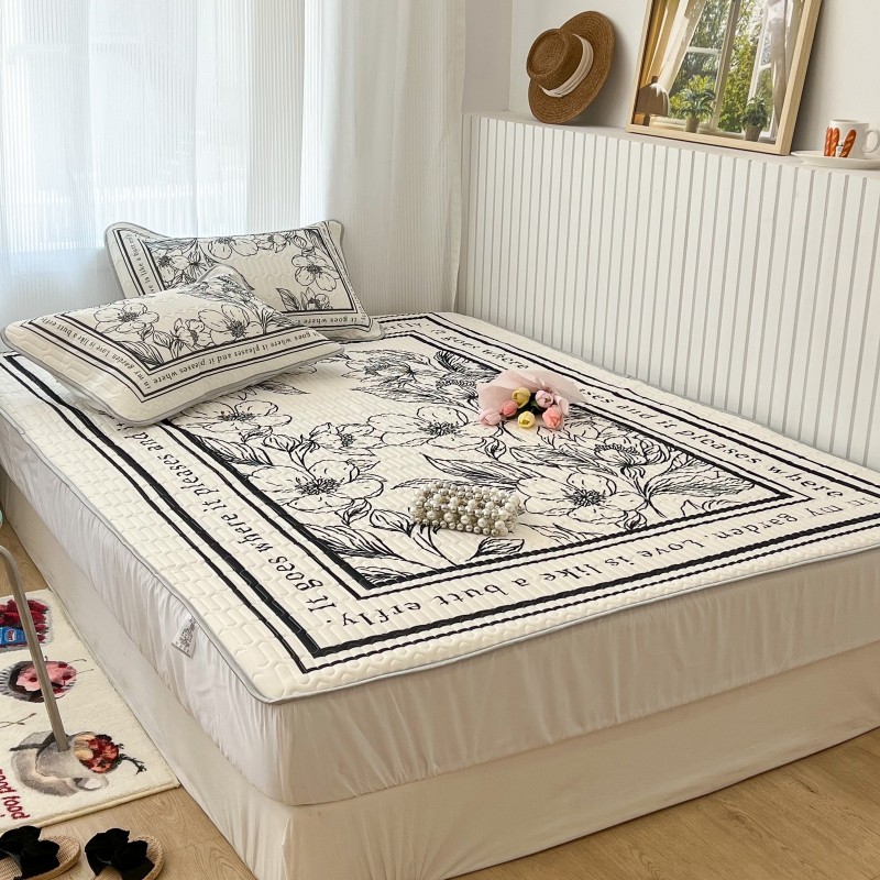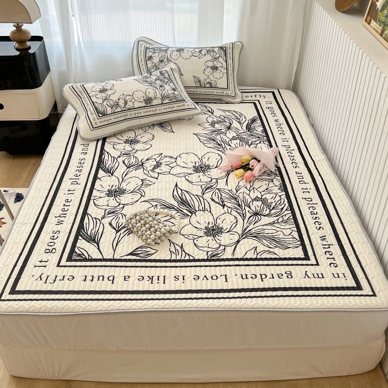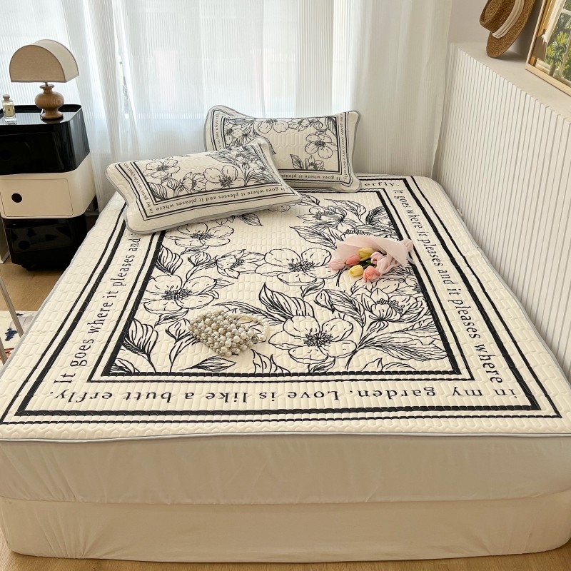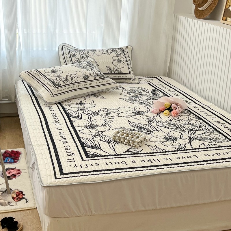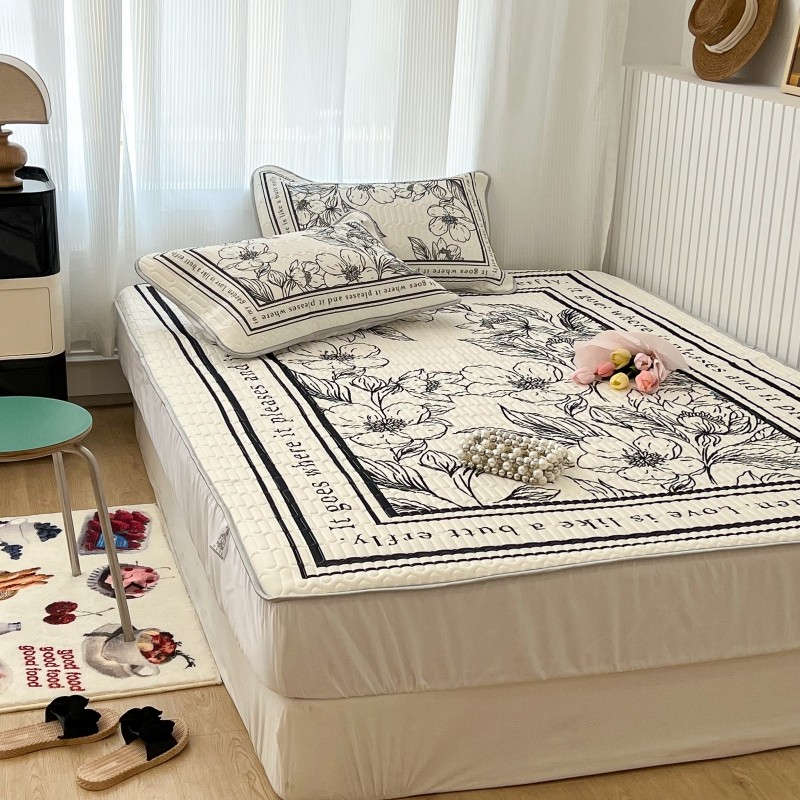 昔可 2022新款ins风小清新床笠款乳胶凉席三件套 床笠款-后花园