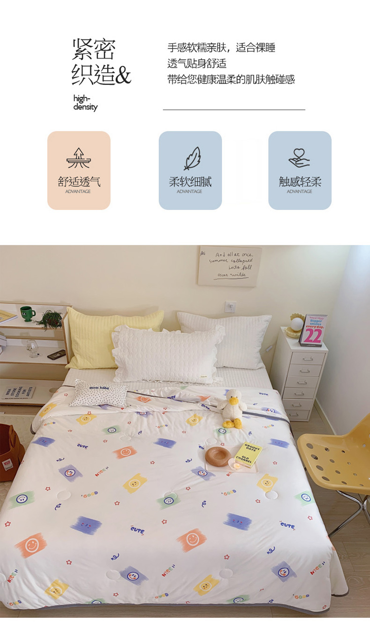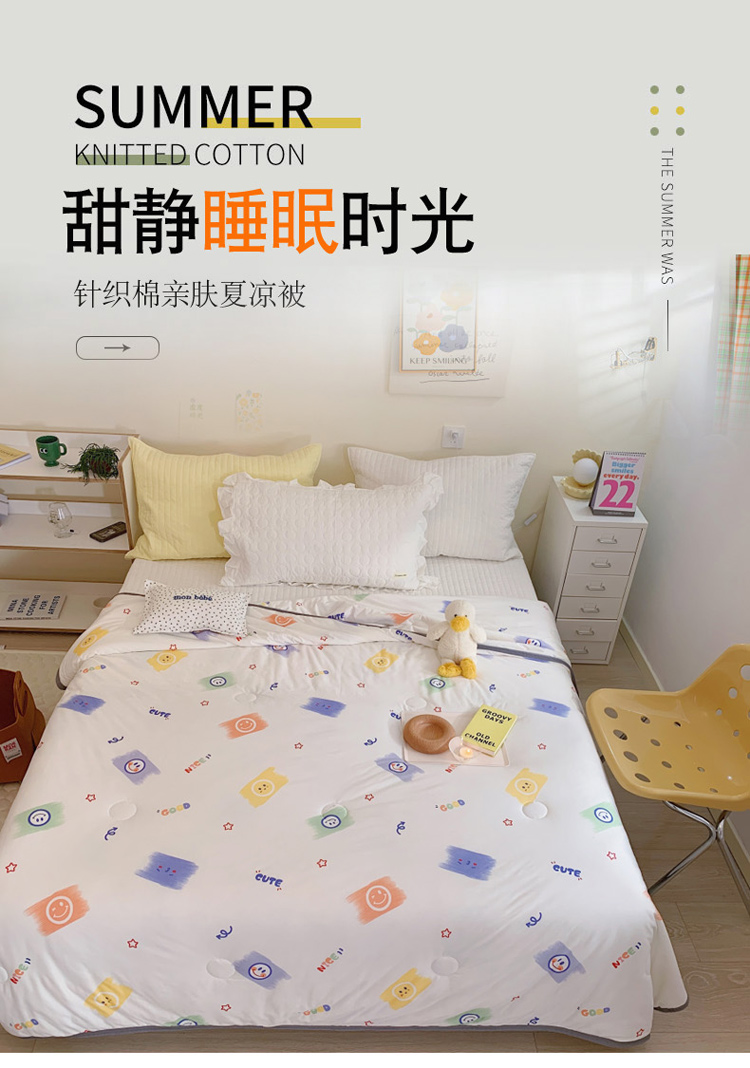 商品名称:慕尚 2025新款针织棉印花夏凉被空调被 笑脸