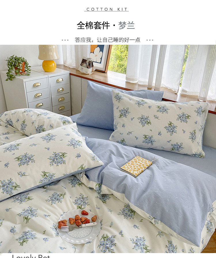 当前位置: 91家纺网 > 商品网购 > 床品套件 > 四件套 > 全棉普通四件套 > 麦伦 2022新款全棉40支13372纯棉斜纹田园碎花四件套 梦兰