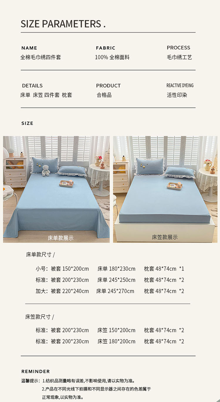 当前位置: 91家纺网 > 商品网购 > 床品套件 > 四件套 > 全棉普通四件套 > 泽西 2022新款全棉花边毛巾绣四件套 圣诞树-白拼蓝