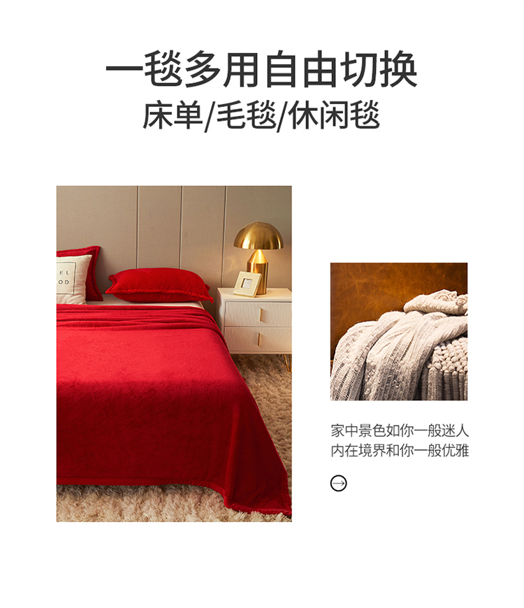 商品名称:雅萱 2022新款牛奶绒多功能毛毯 大红