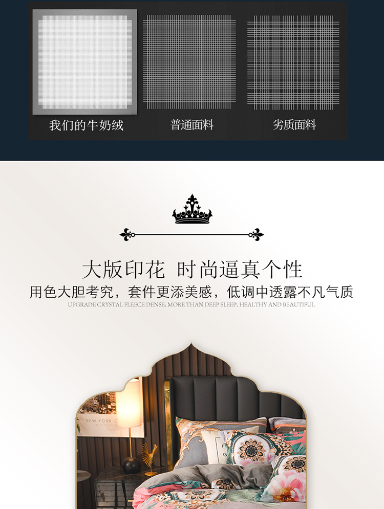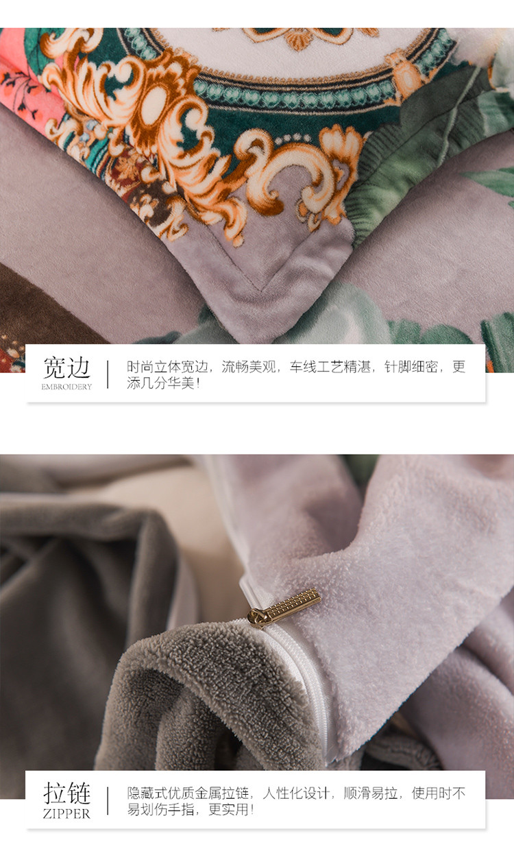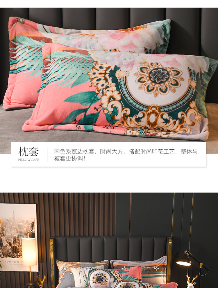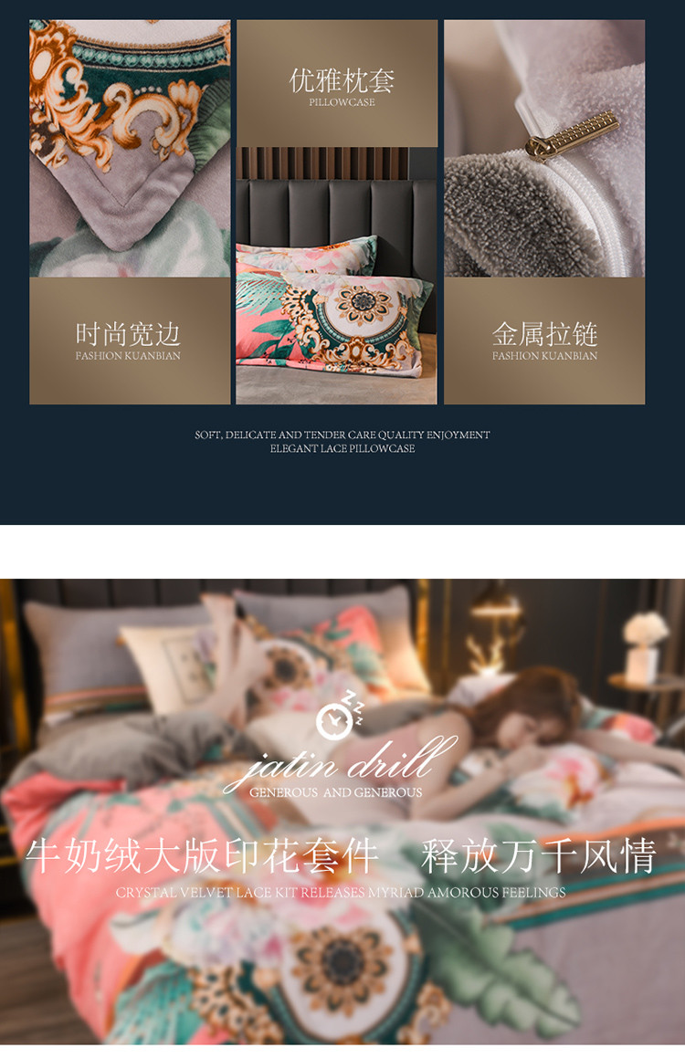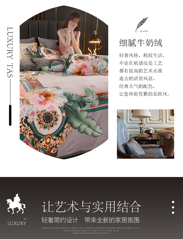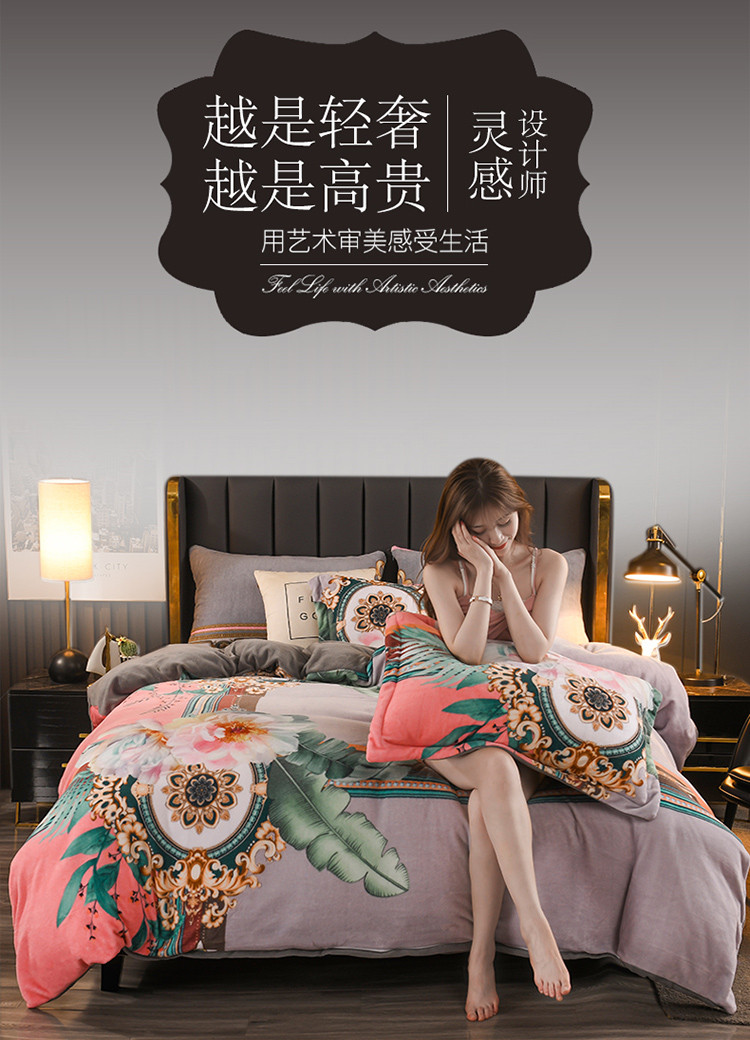 商品名称:席佬大 2025新款直播款大版印花牛奶绒四件套 绿叶牡丹