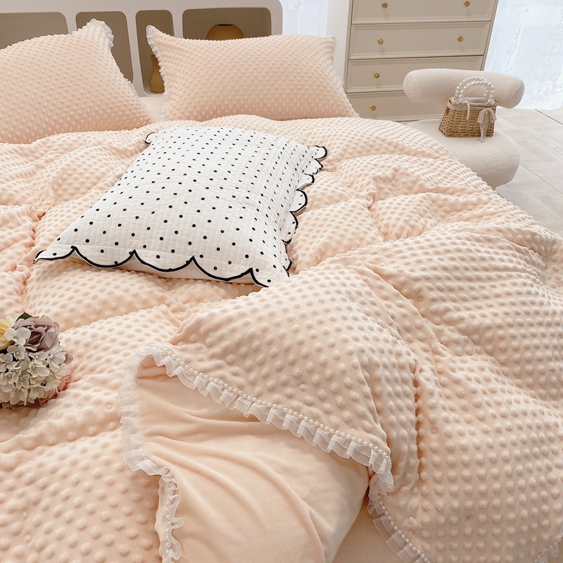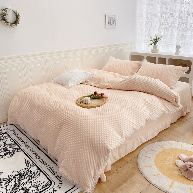 (总)玛奇朵 2025新款韩系少女全棉立体提花四件套-,青纱粉黛
