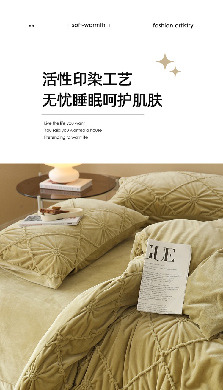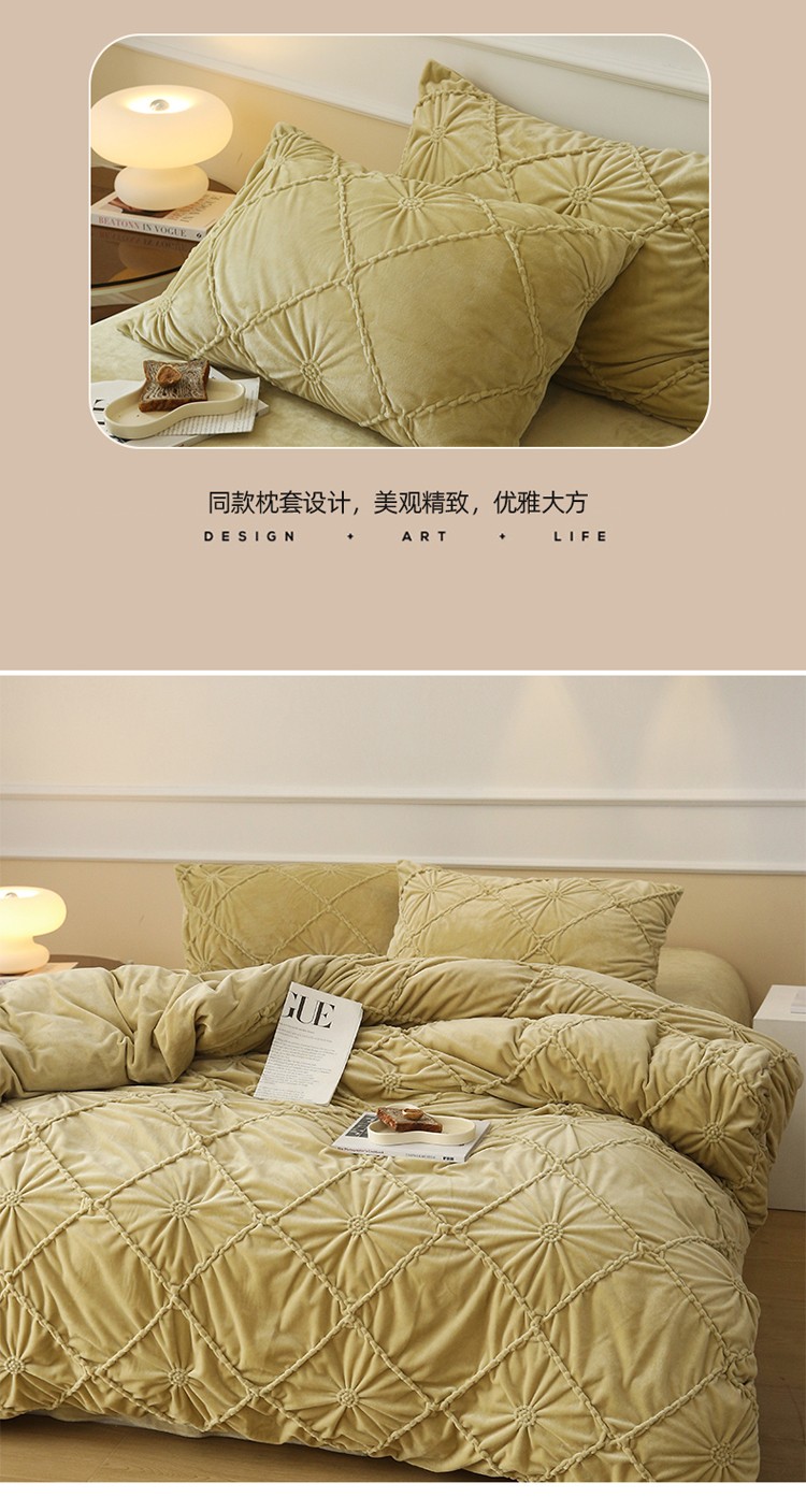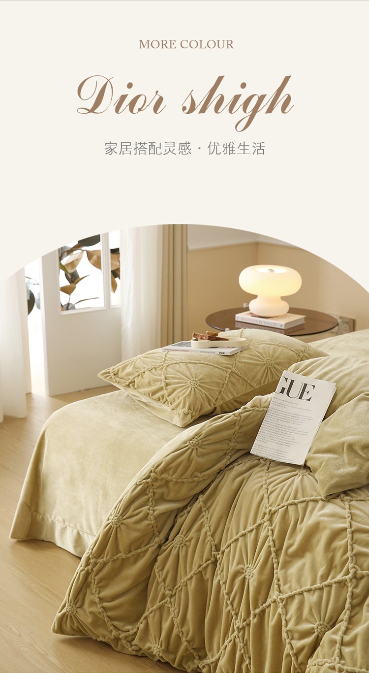 (总)玛奇朵 2025新款秋冬新品230克工艺立体雕花牛奶绒四件套 花满溪系列,花满溪-粉,花满溪-灰,花满溪-卡其