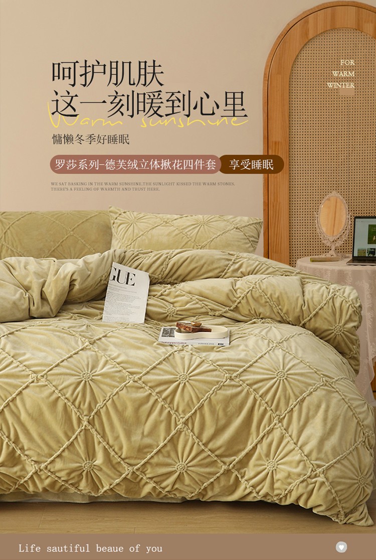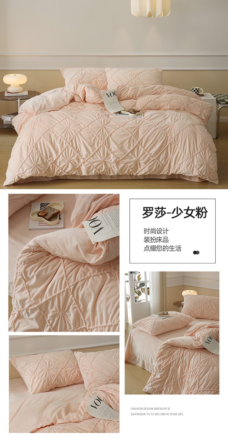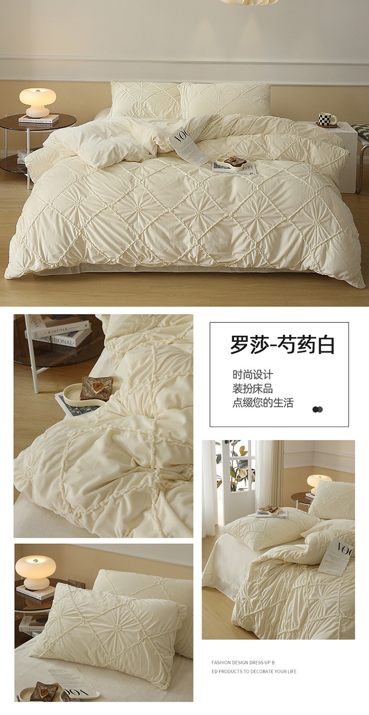 商品名称:(总)玛奇朵 2022新款德芙绒立体揪花四件套--罗莎系列