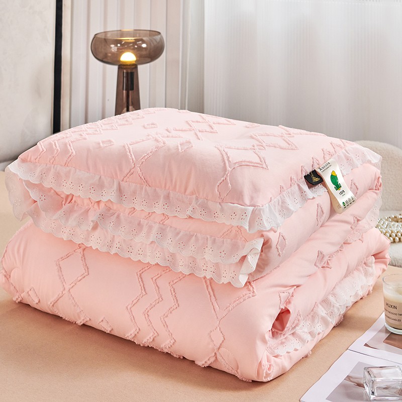 丽卡家纺2023新款米兰雕花春秋被被子被芯系列 粉玉