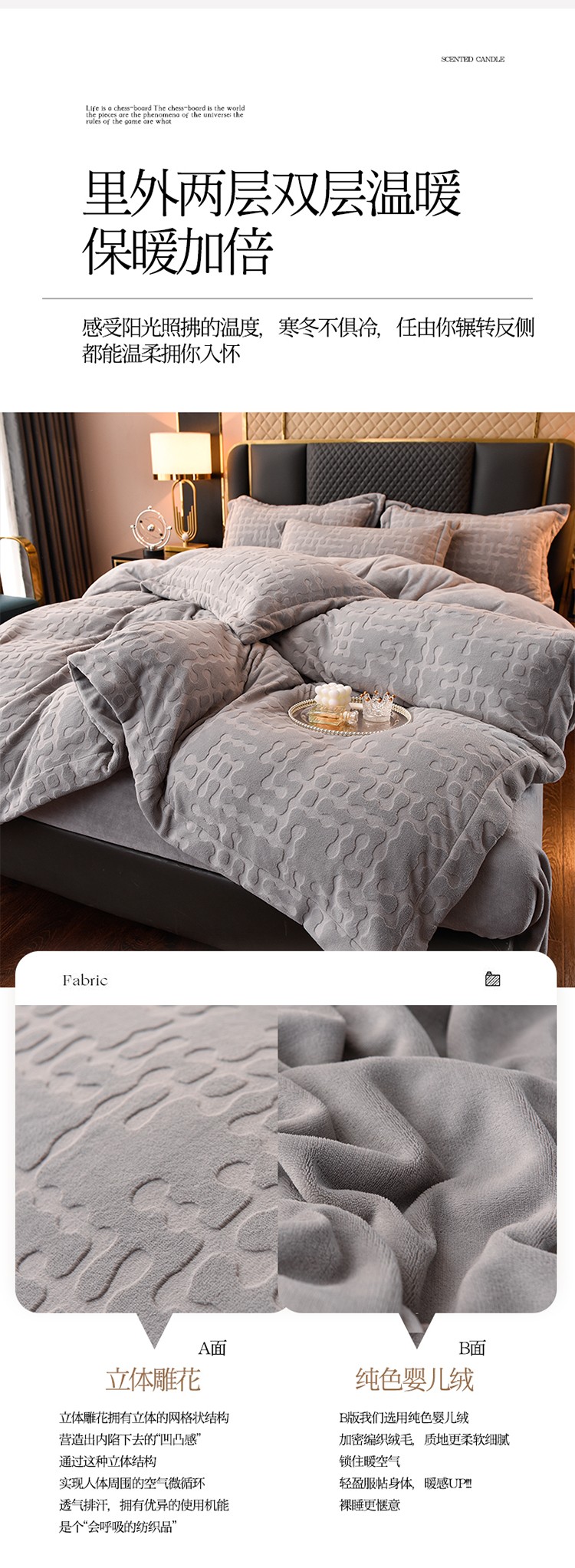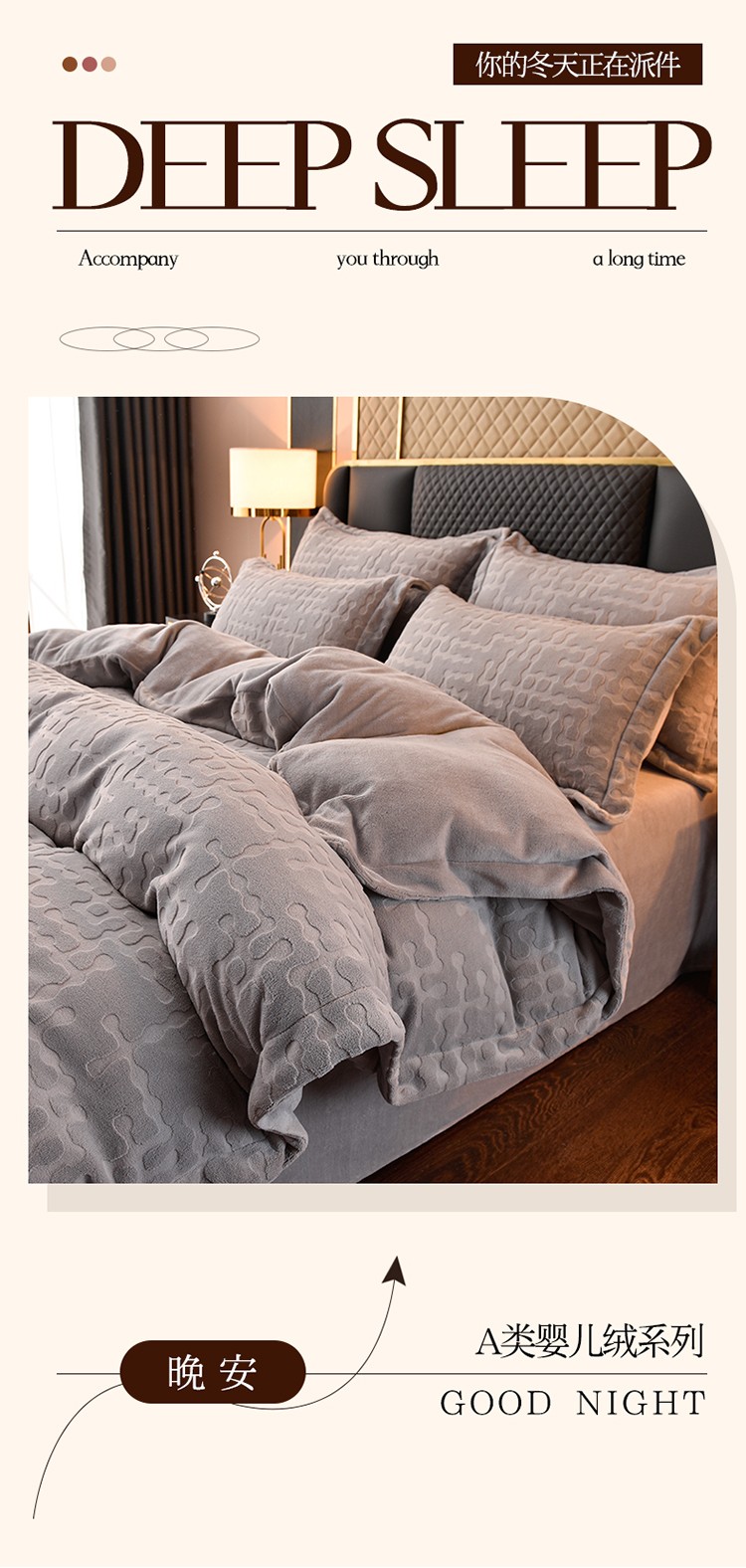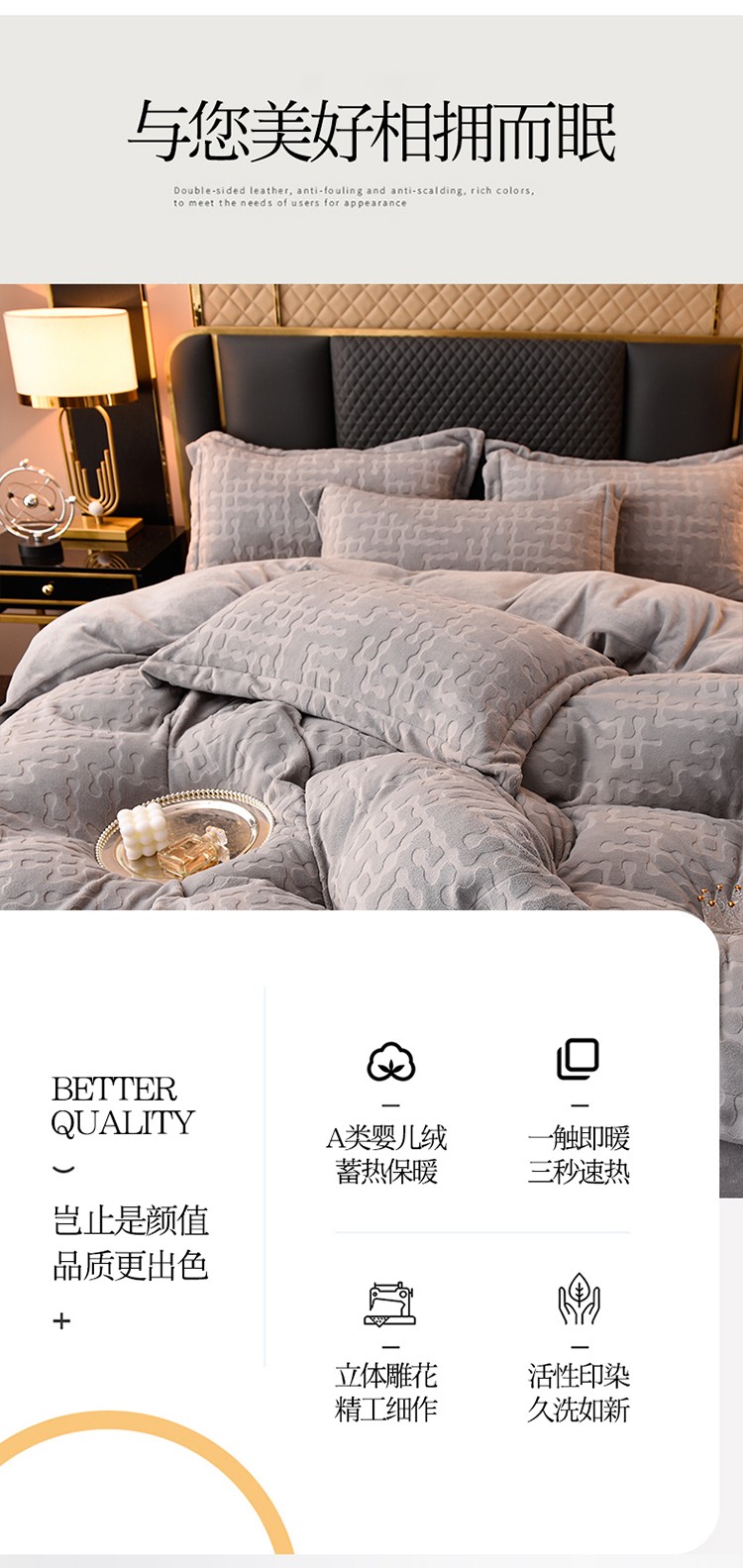 商品名称:米奈家居 2024新款A类牛奶绒四件套-瑞利 绅士灰