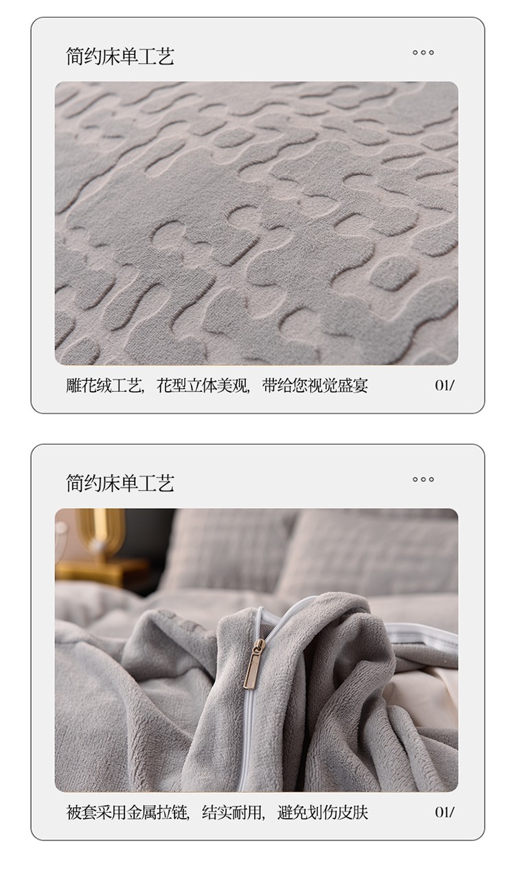 (总)米奈家居 2025新款立体雕花拼角款牛奶绒四件套,浮光-灰,浮光-咖,花间集-豆沙,花间集-蓝,花如玉-蓝,花如玉-驼,秋影-粉,秋影-灰蓝