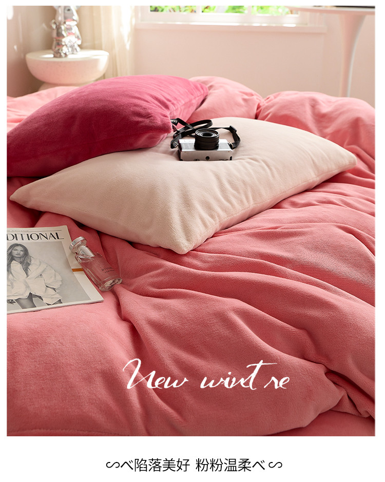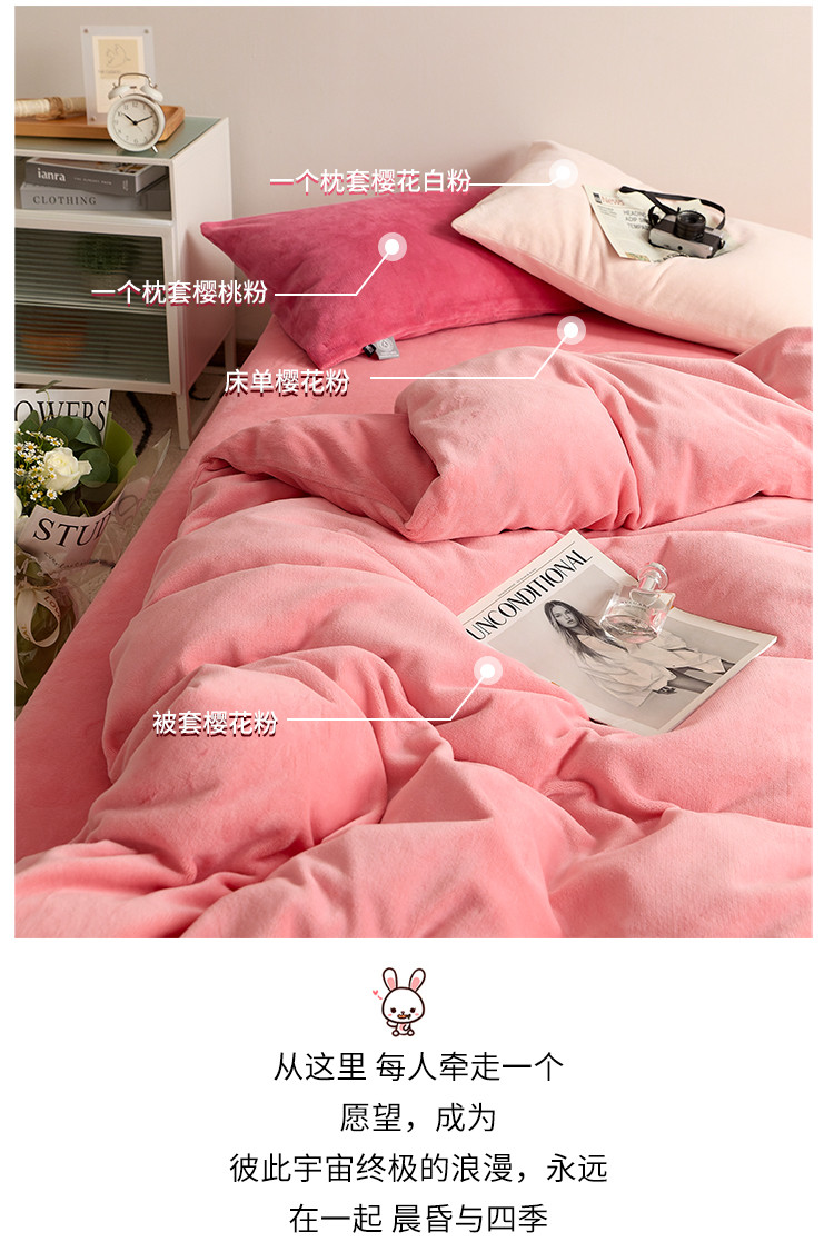商品名称:花沐 2023新款博主风粉色系混搭牛奶绒四件套 莓莓情书