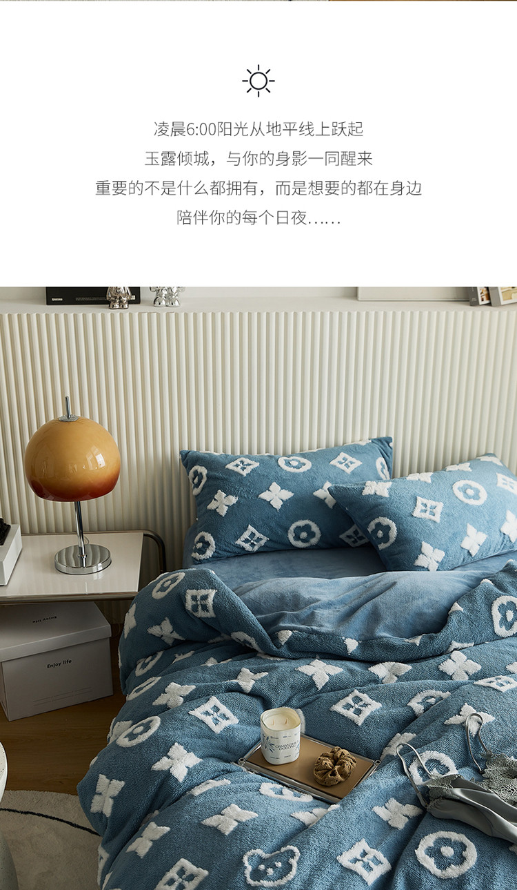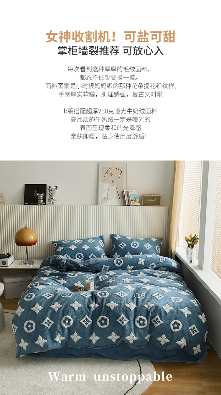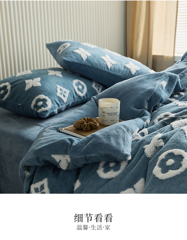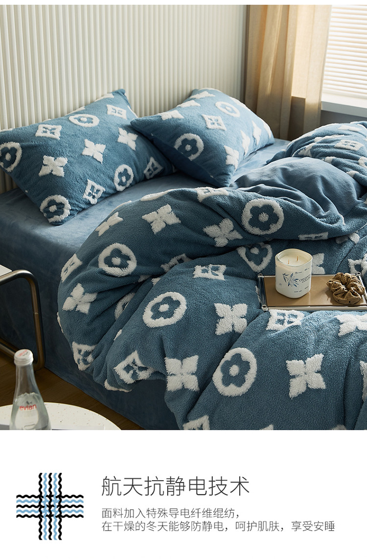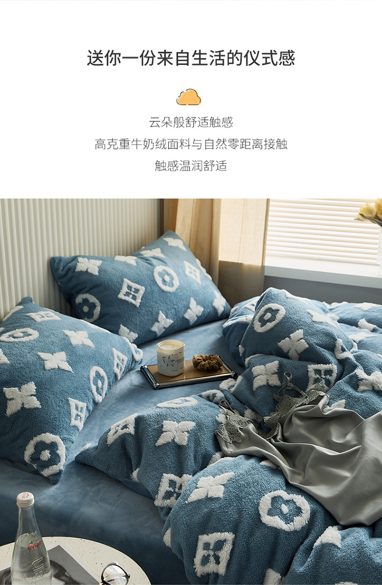 商品名称:花沐 2023新款轻奢提花牛奶绒四件套 提花蓝色