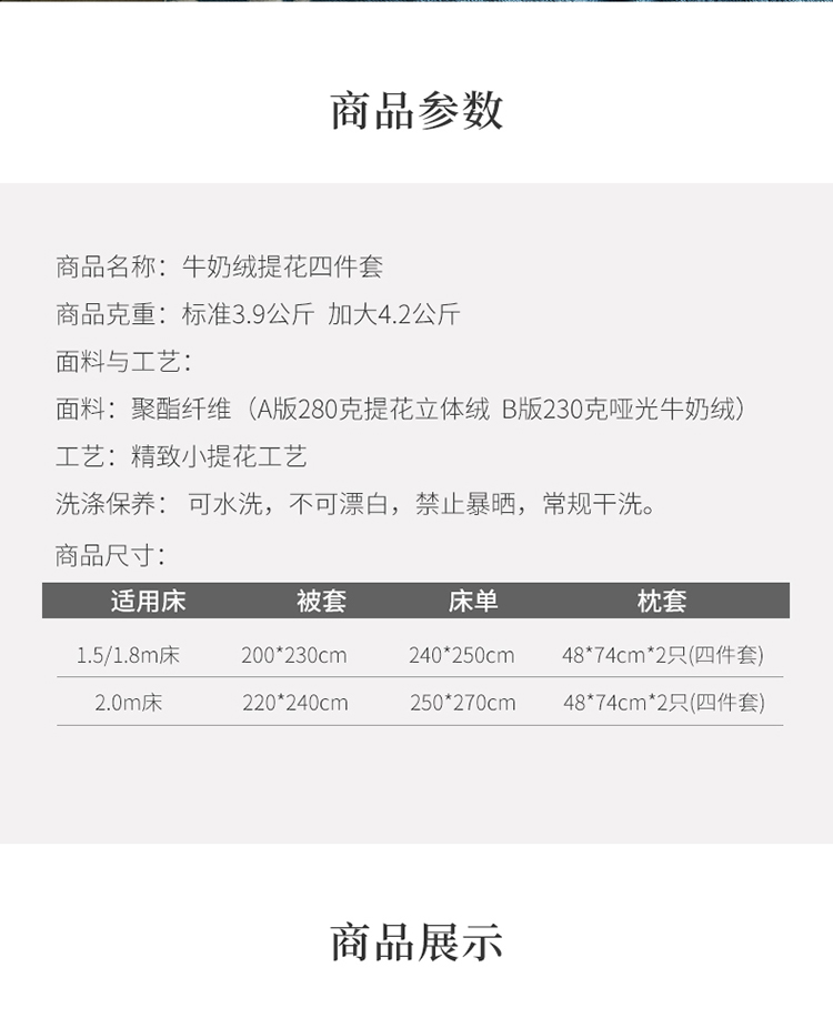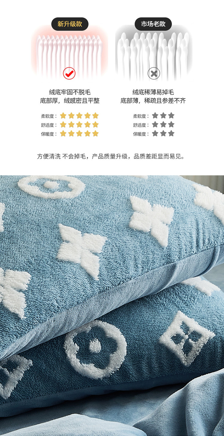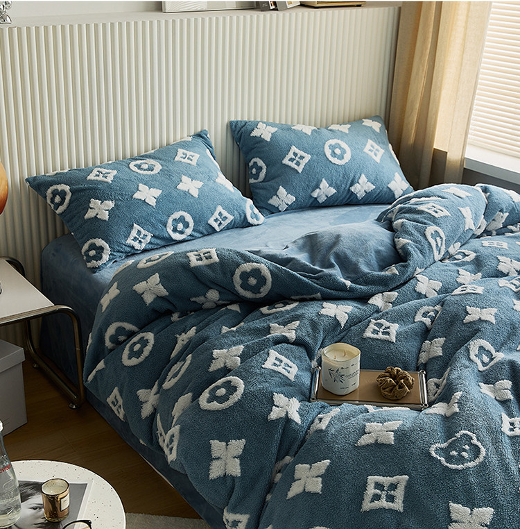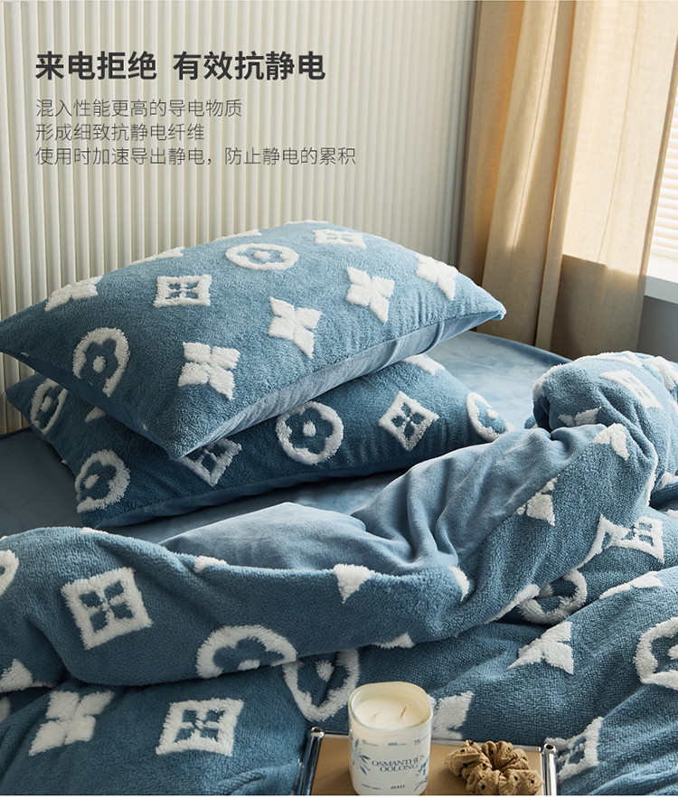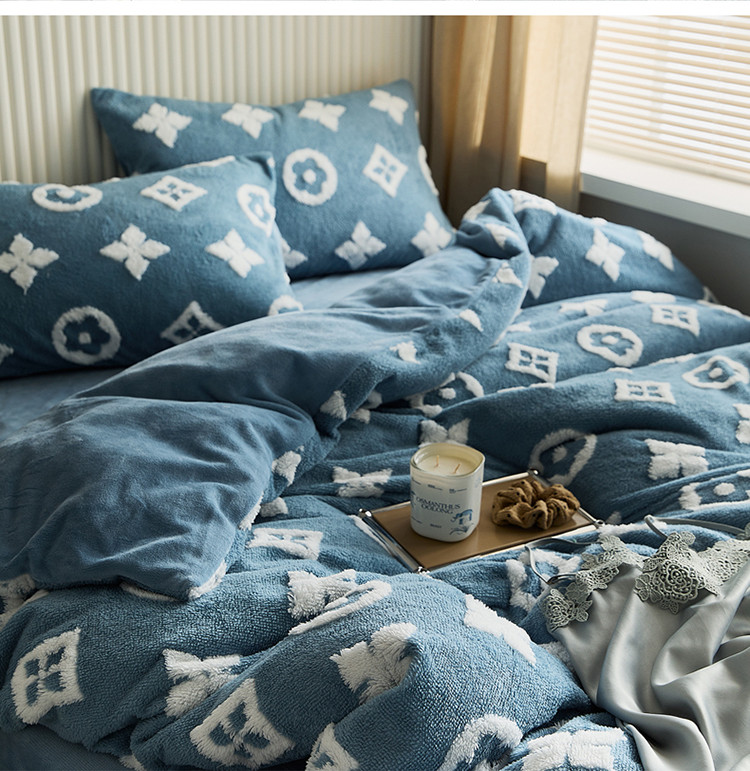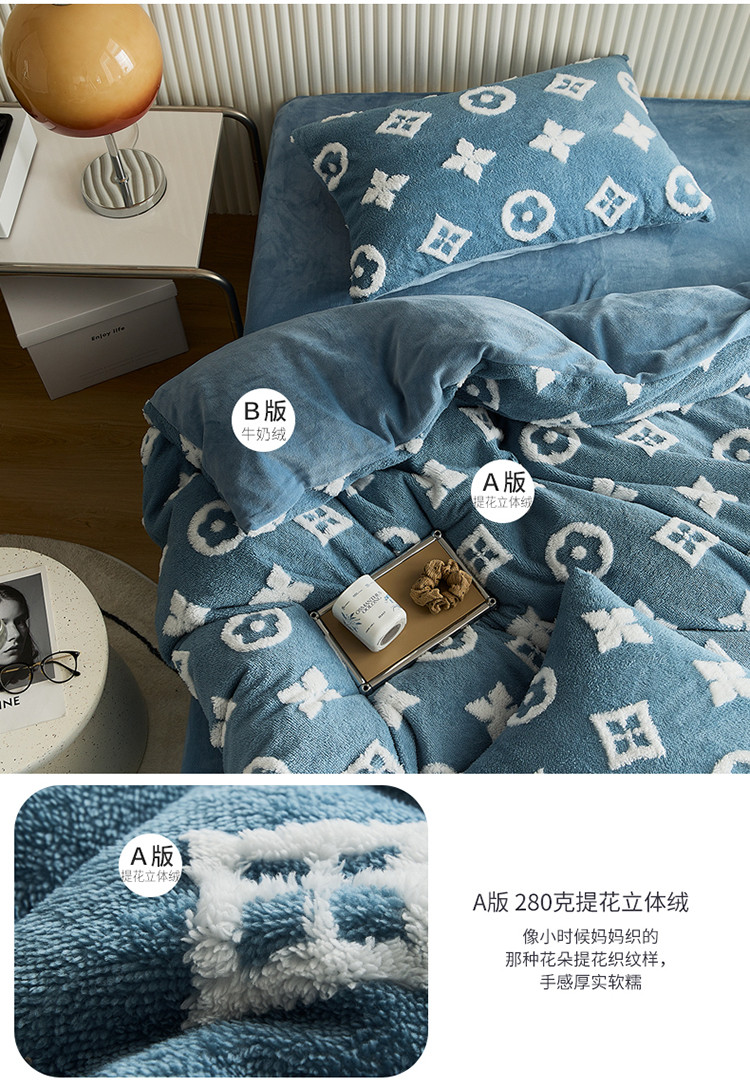 商品名称:花沐 2023新款轻奢提花牛奶绒四件套 提花蓝色