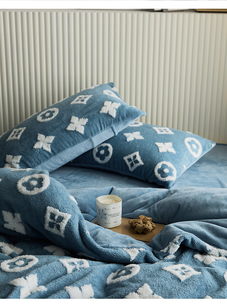 花沐 2023新款轻奢提花牛奶绒四件套 提花蓝色