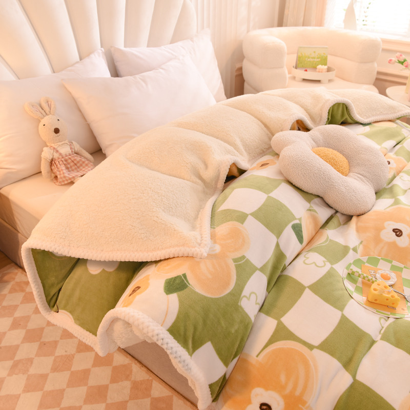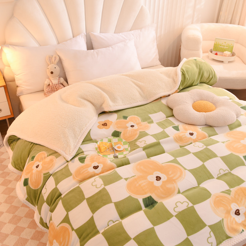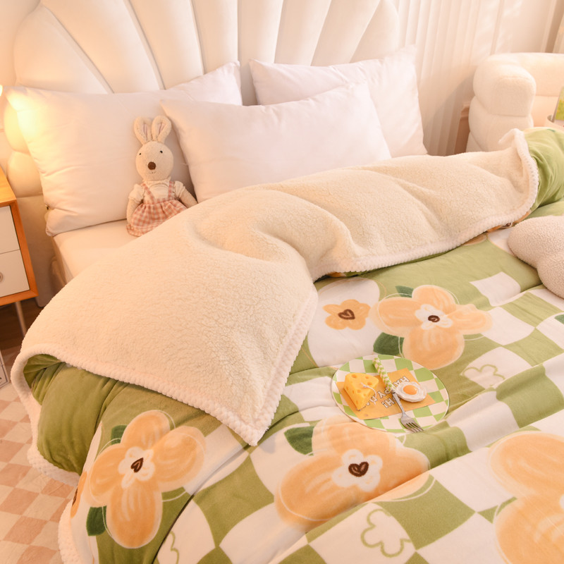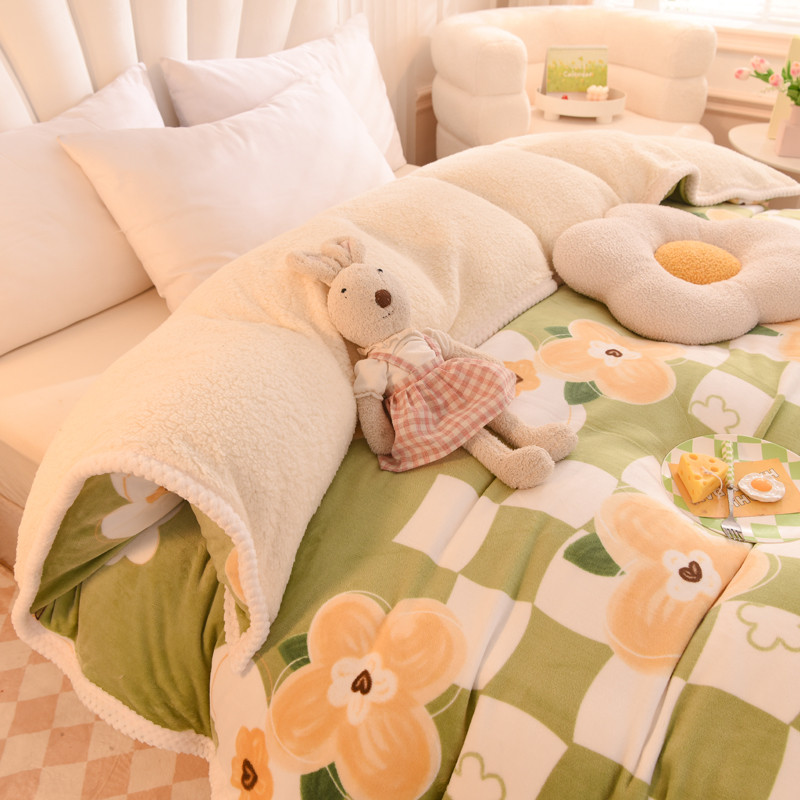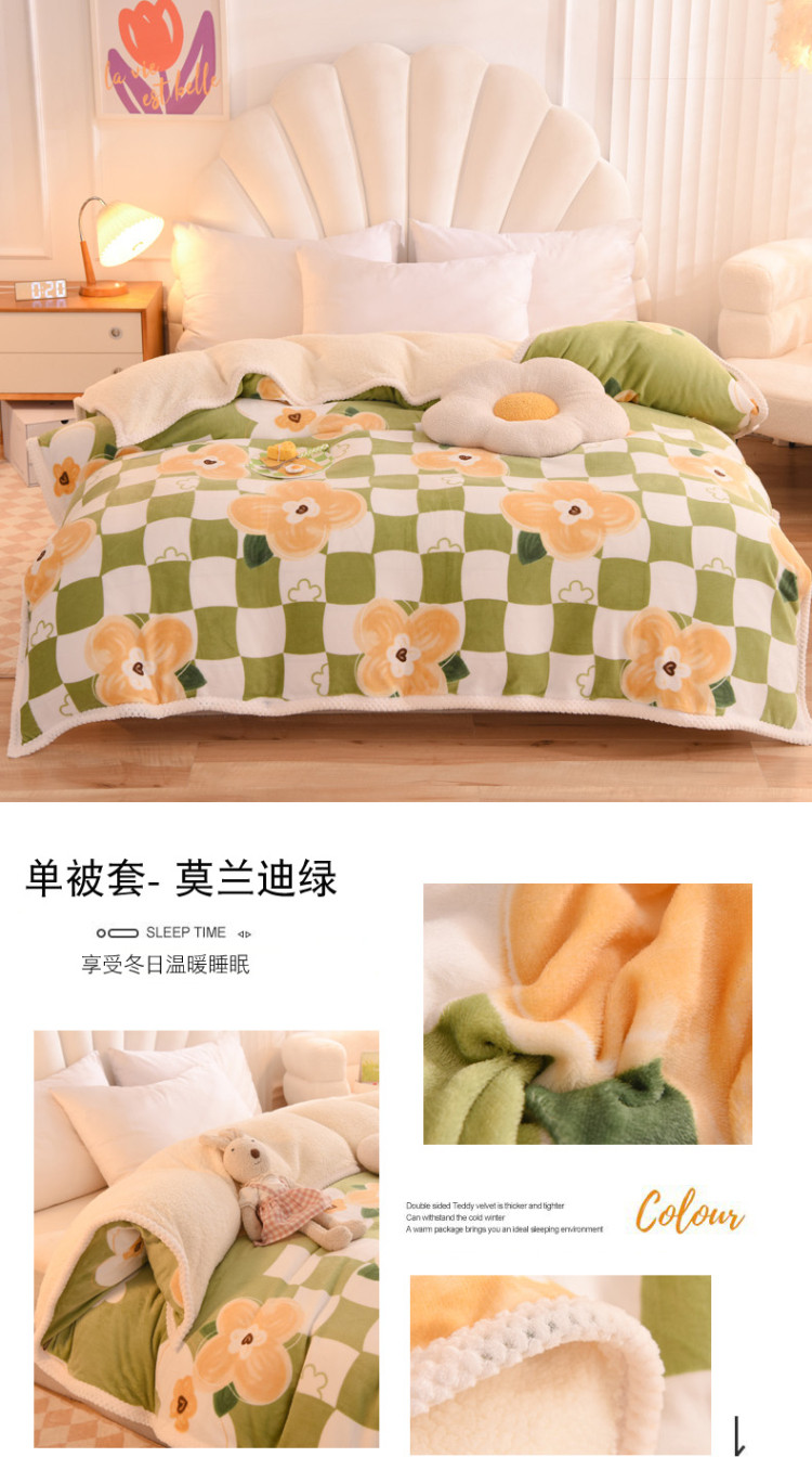 商品名称:眠博士 2021新款印花拼羊羔绒单被套 莫兰迪绿