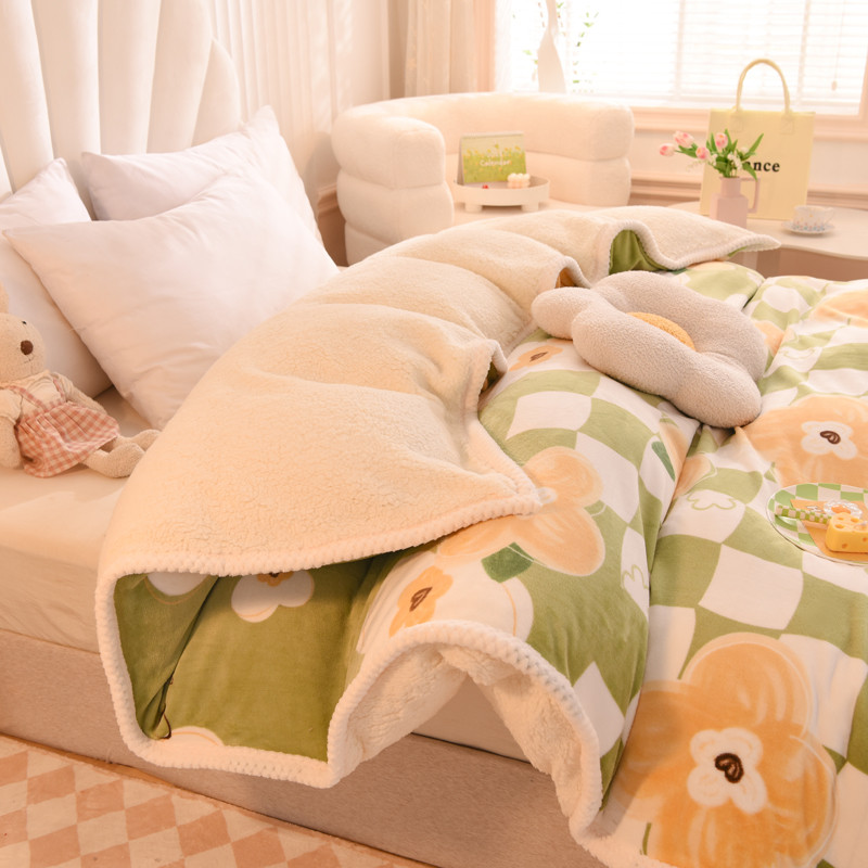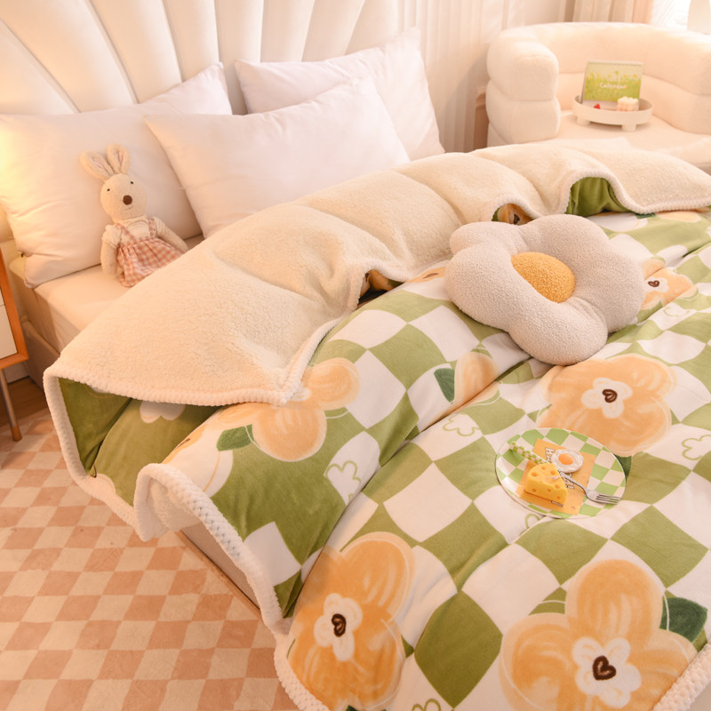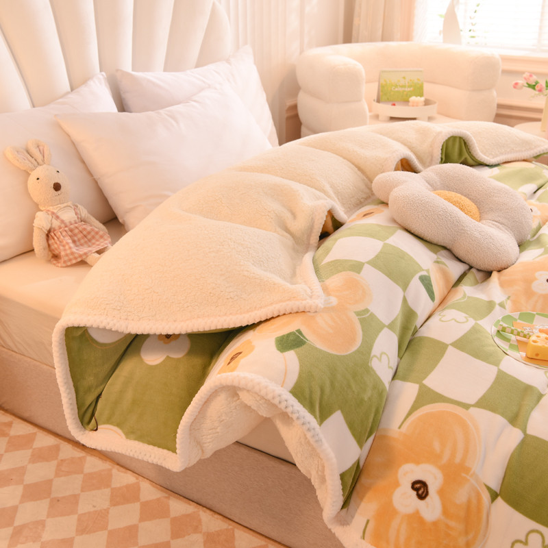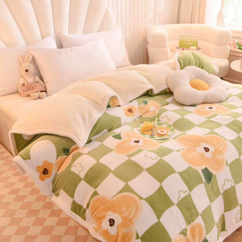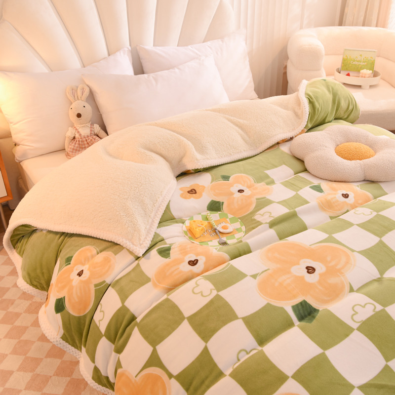 商品名称:眠博士 2021新款印花拼羊羔绒单被套 莫兰迪绿