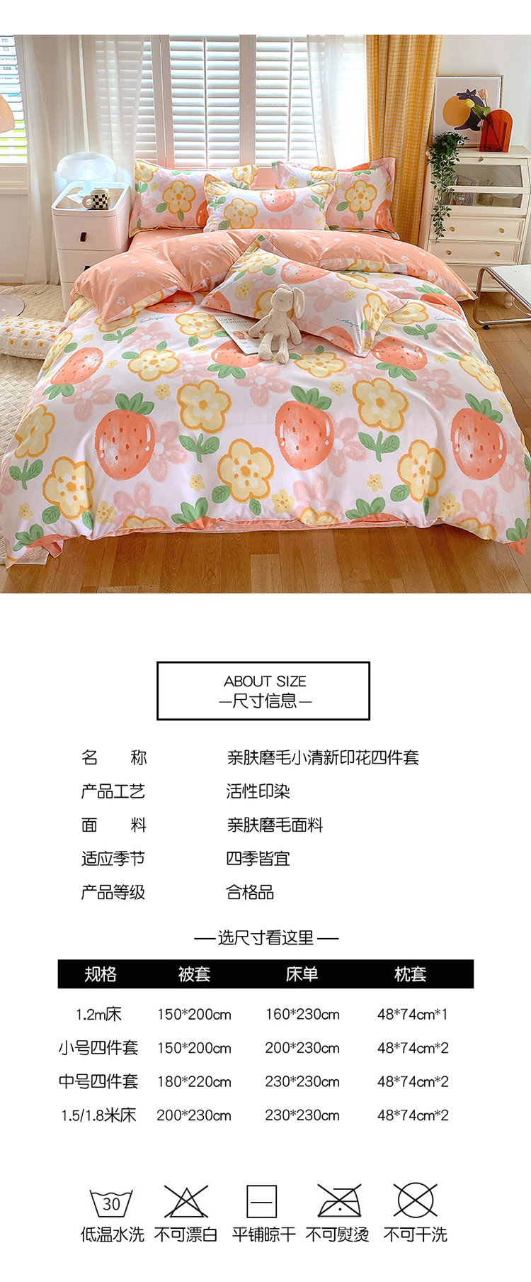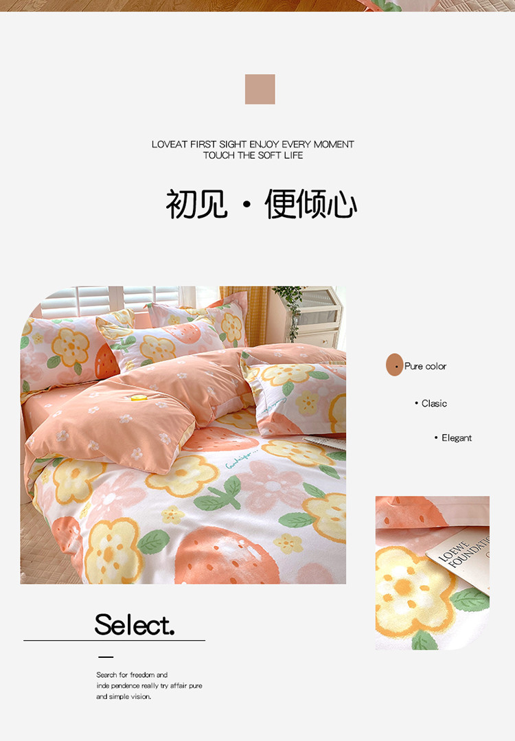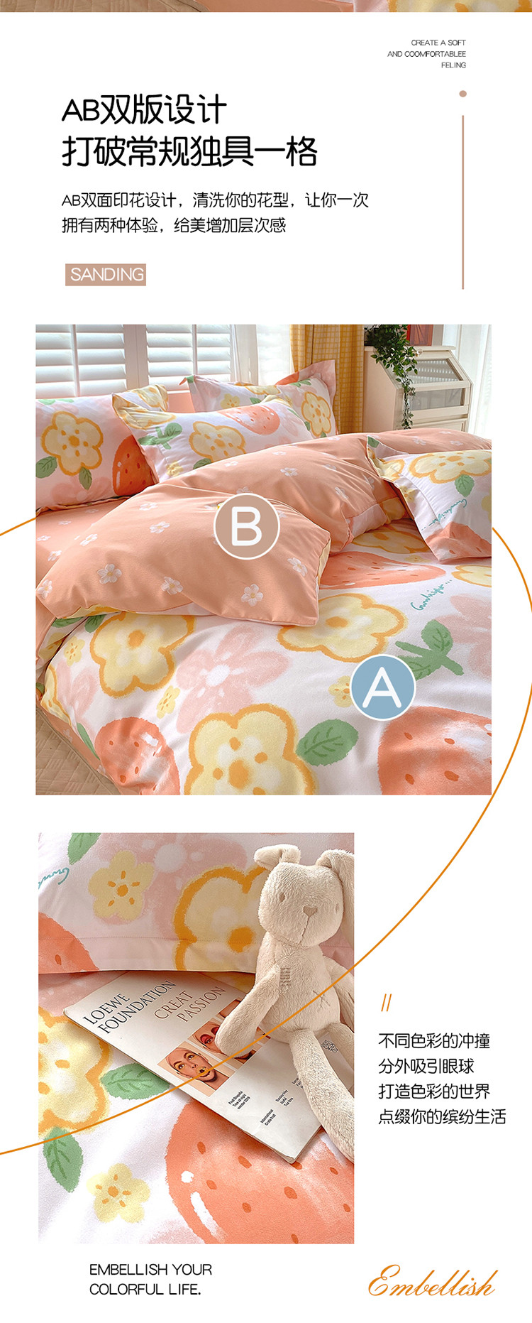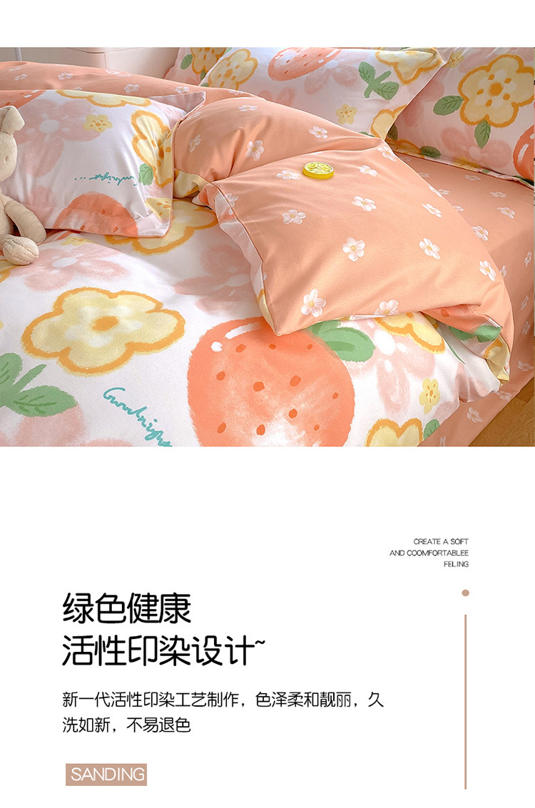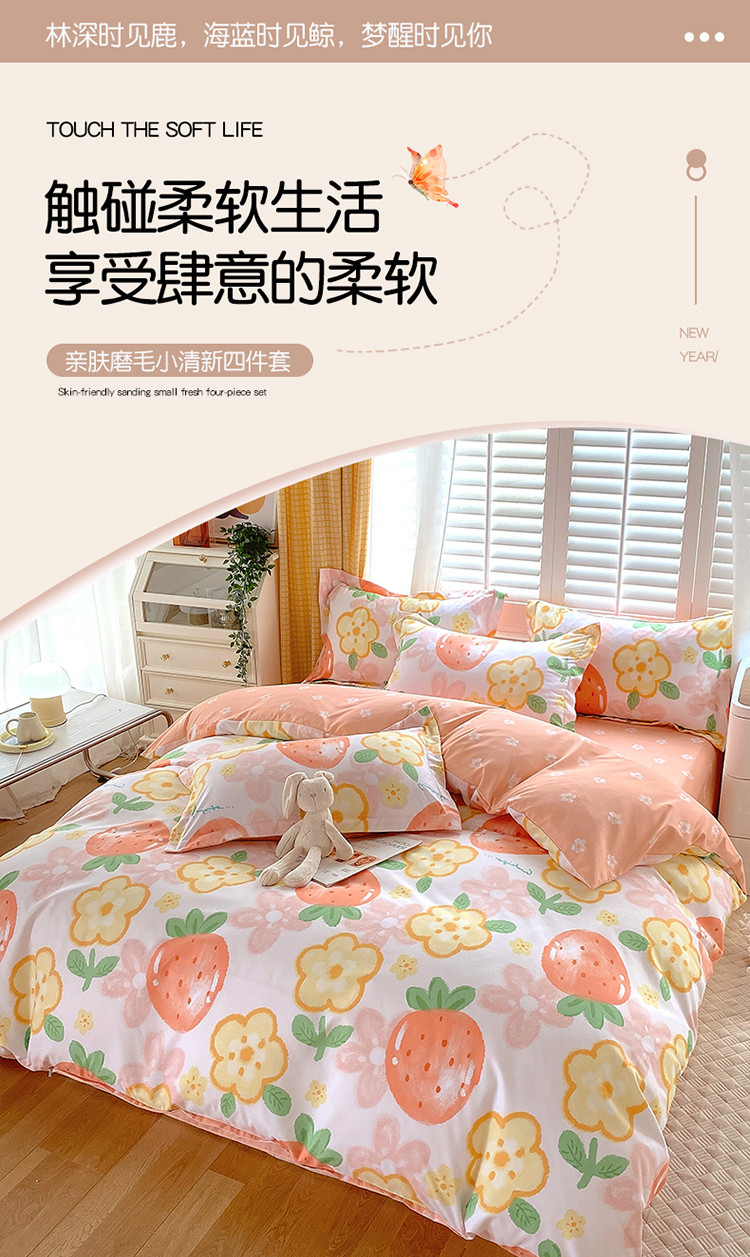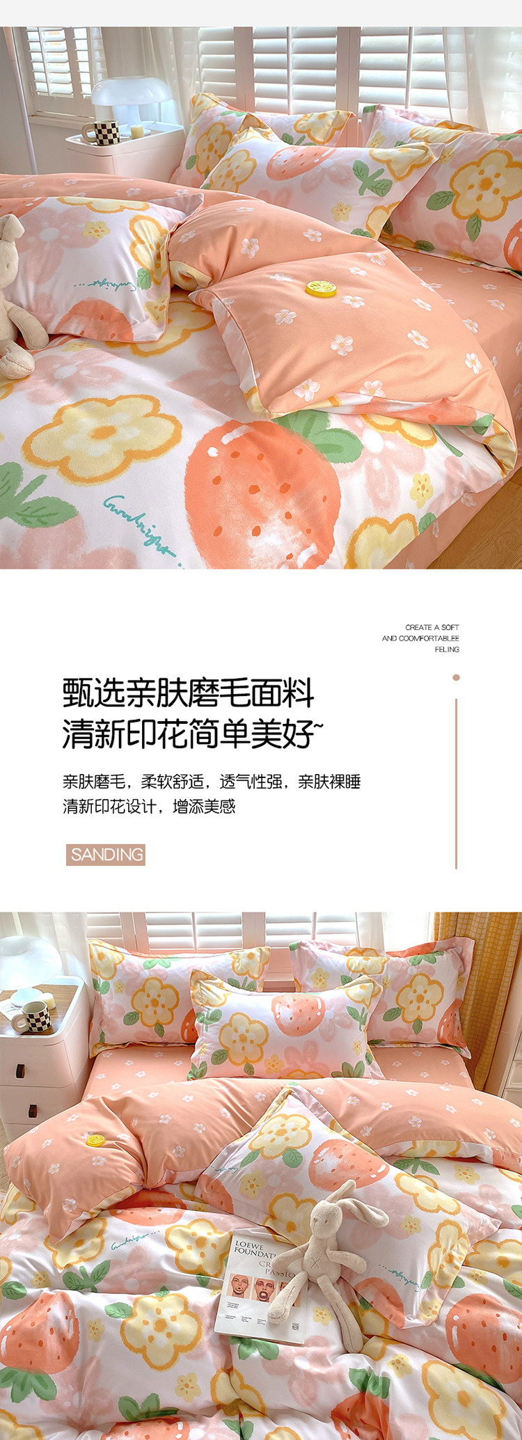 当前位置: 91家纺网 > 商品网购 > 床品套件 > 四件套 > 化纤普通四件套 > 艾橙2022秋冬新款140g植物羊绒磨毛四件套系列 草莓物语
