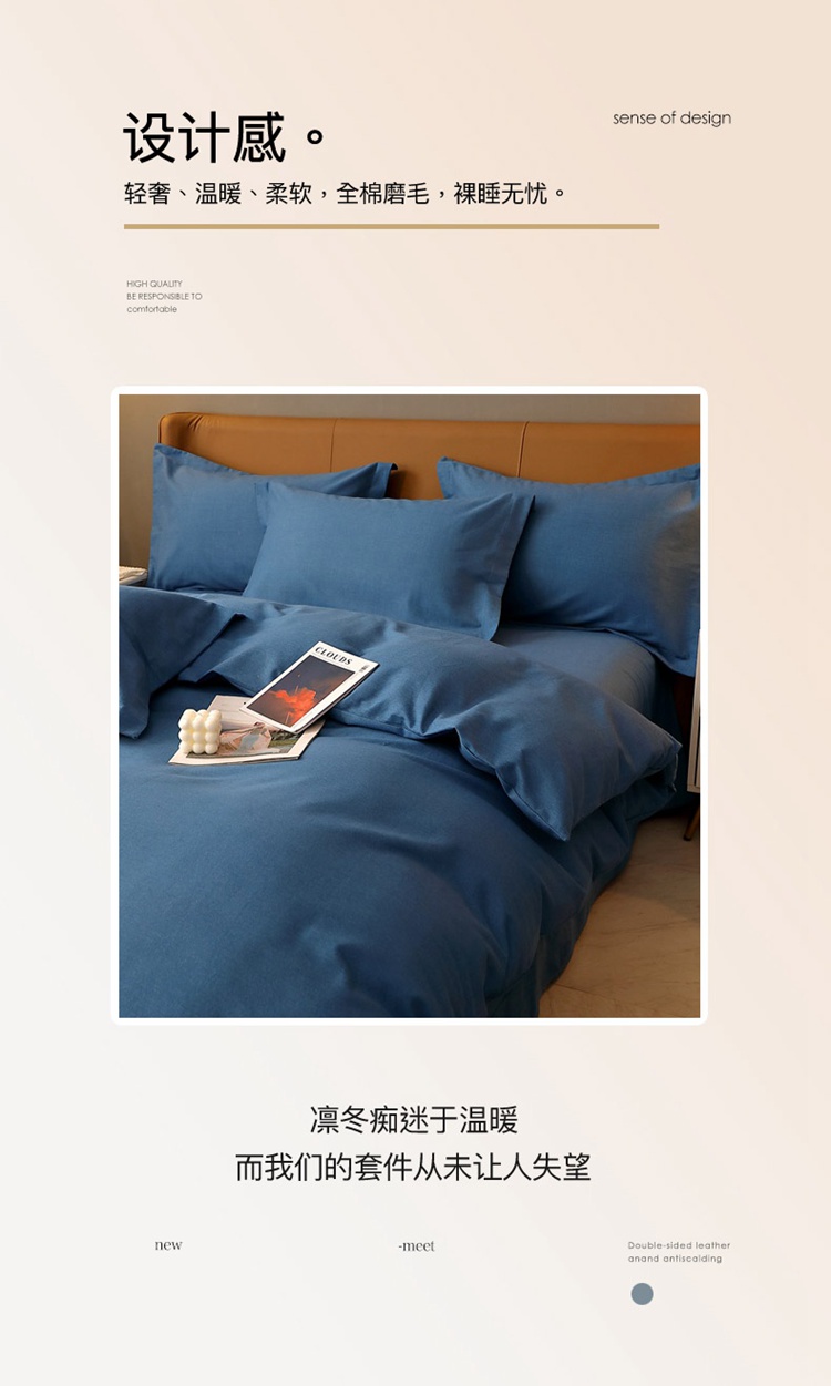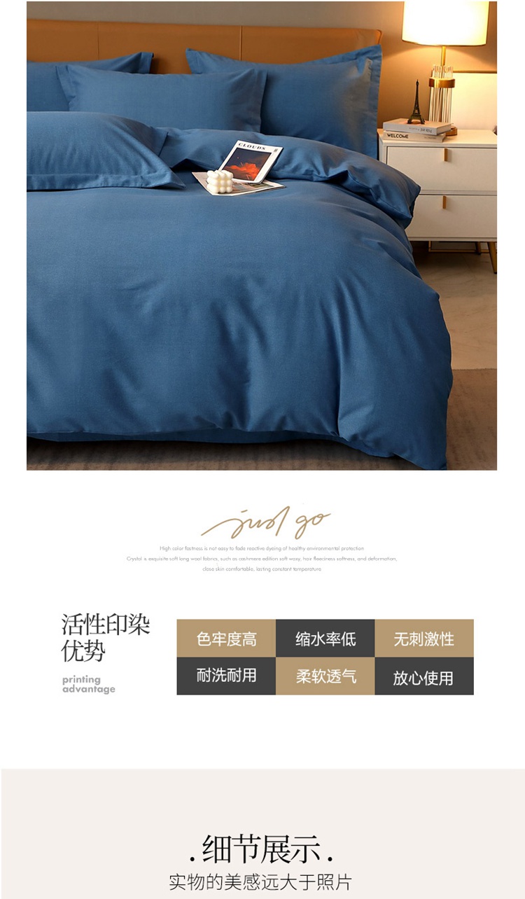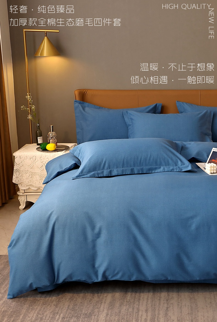 当前位置: 91家纺网 > 商品网购 > 床品套件 > 四件套 > 普通磨毛四件套 > 晶缦家纺 2022新款加厚全棉纯色生态磨毛多规格四件套 纯依-宾利蓝