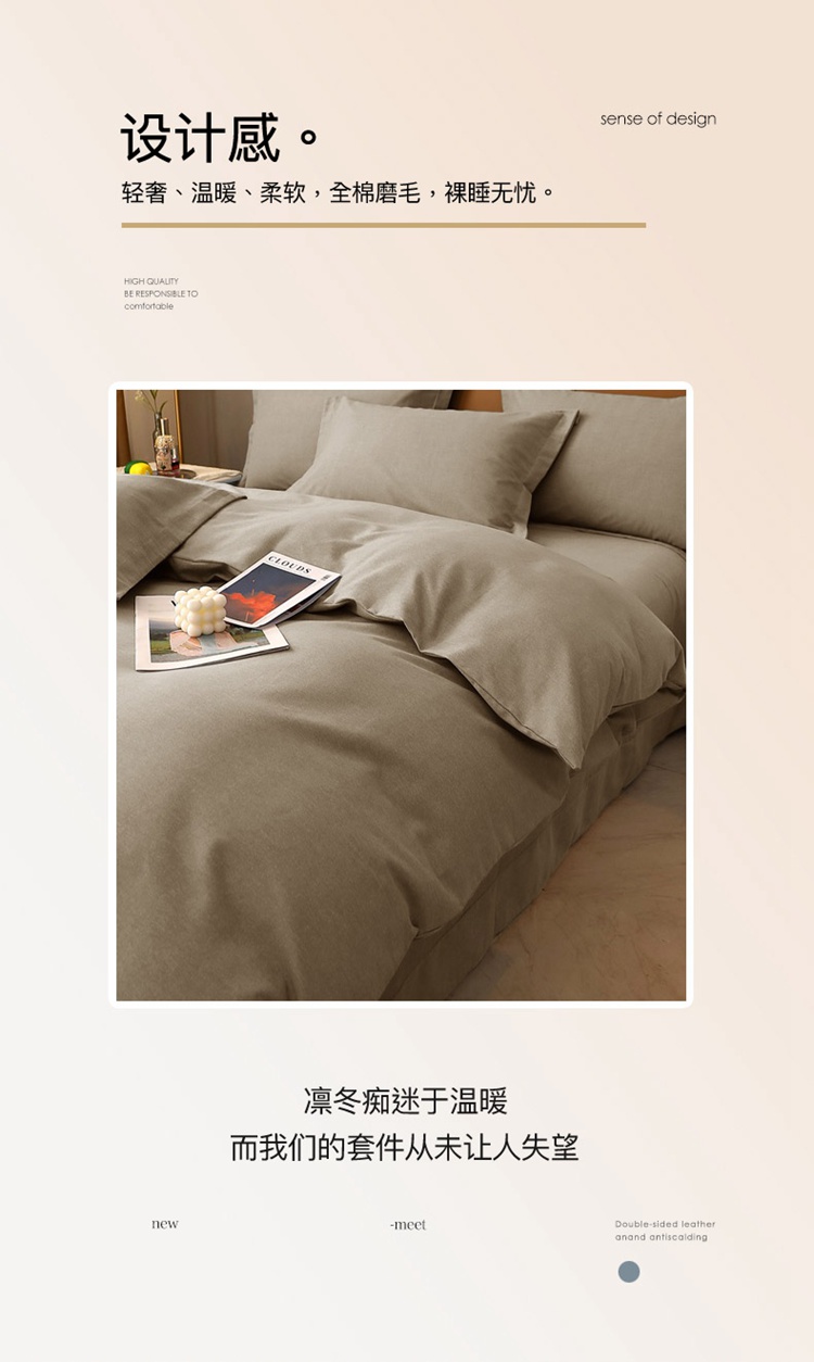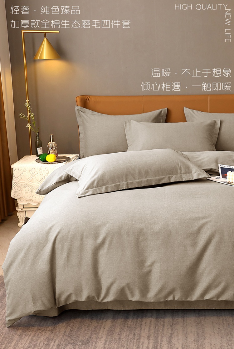 当前位置: 91家纺网 > 商品网购 > 床品套件 > 四件套 > 普通磨毛四件套 > 晶缦家纺 2022新款加厚全棉纯色生态磨毛多规格四件套 纯依-时尚灰