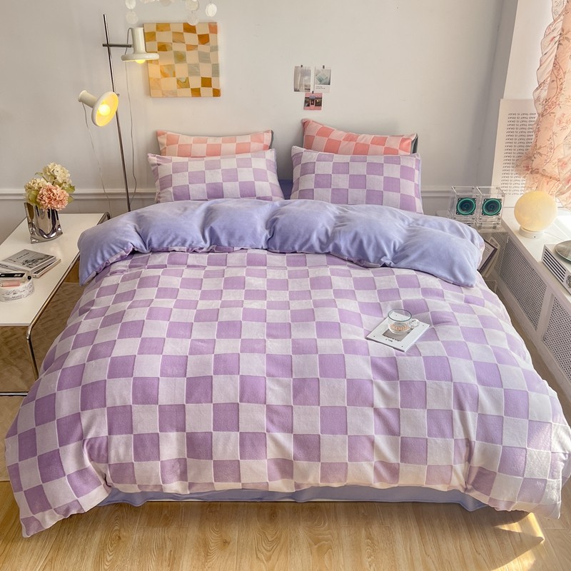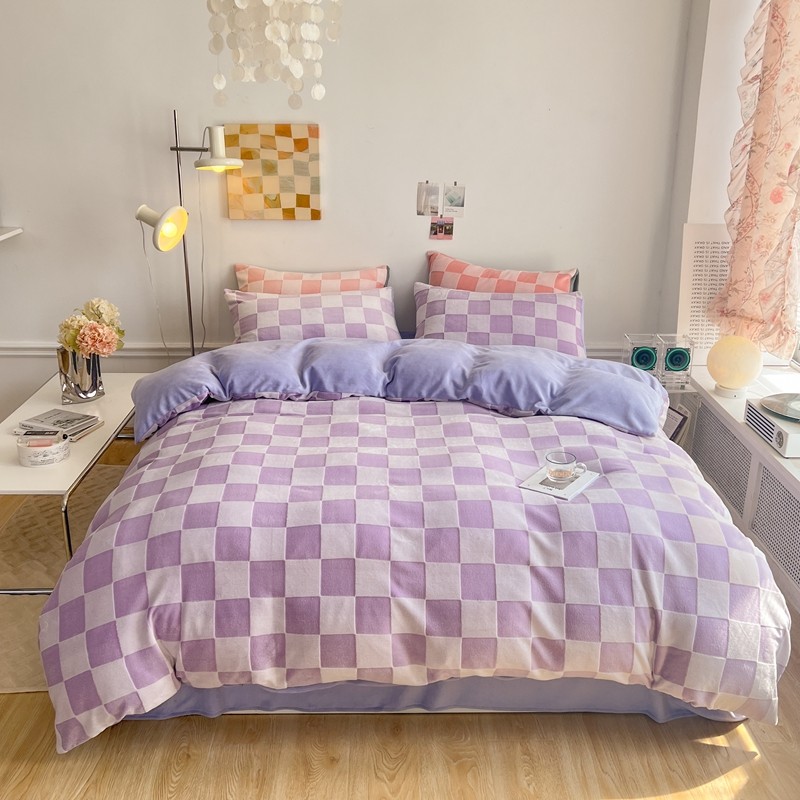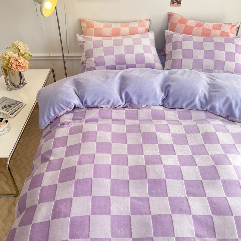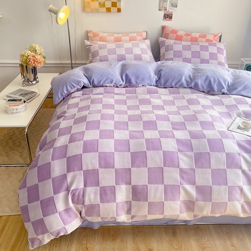 珺柔 2022新款提花格子牛奶绒四件套 紫格子
