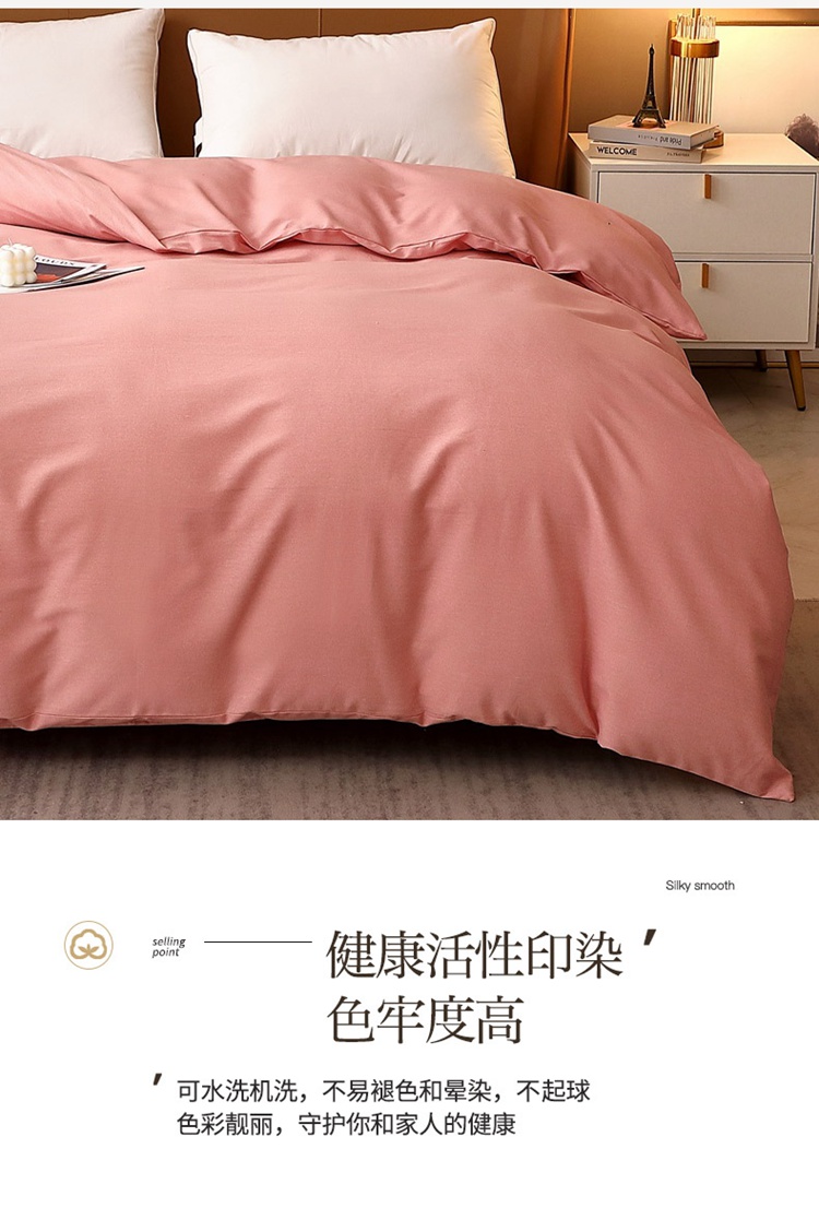 晶缦家纺 2022新款加厚全棉纯色生态磨毛多规格单被套 纯依-粉玉